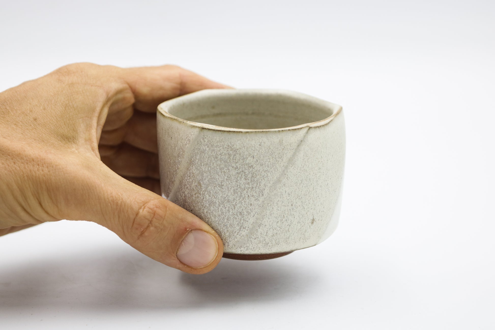 Hand thrown and cut stoneware cup. Glazed inside and outside with matte glaze. One of a kind