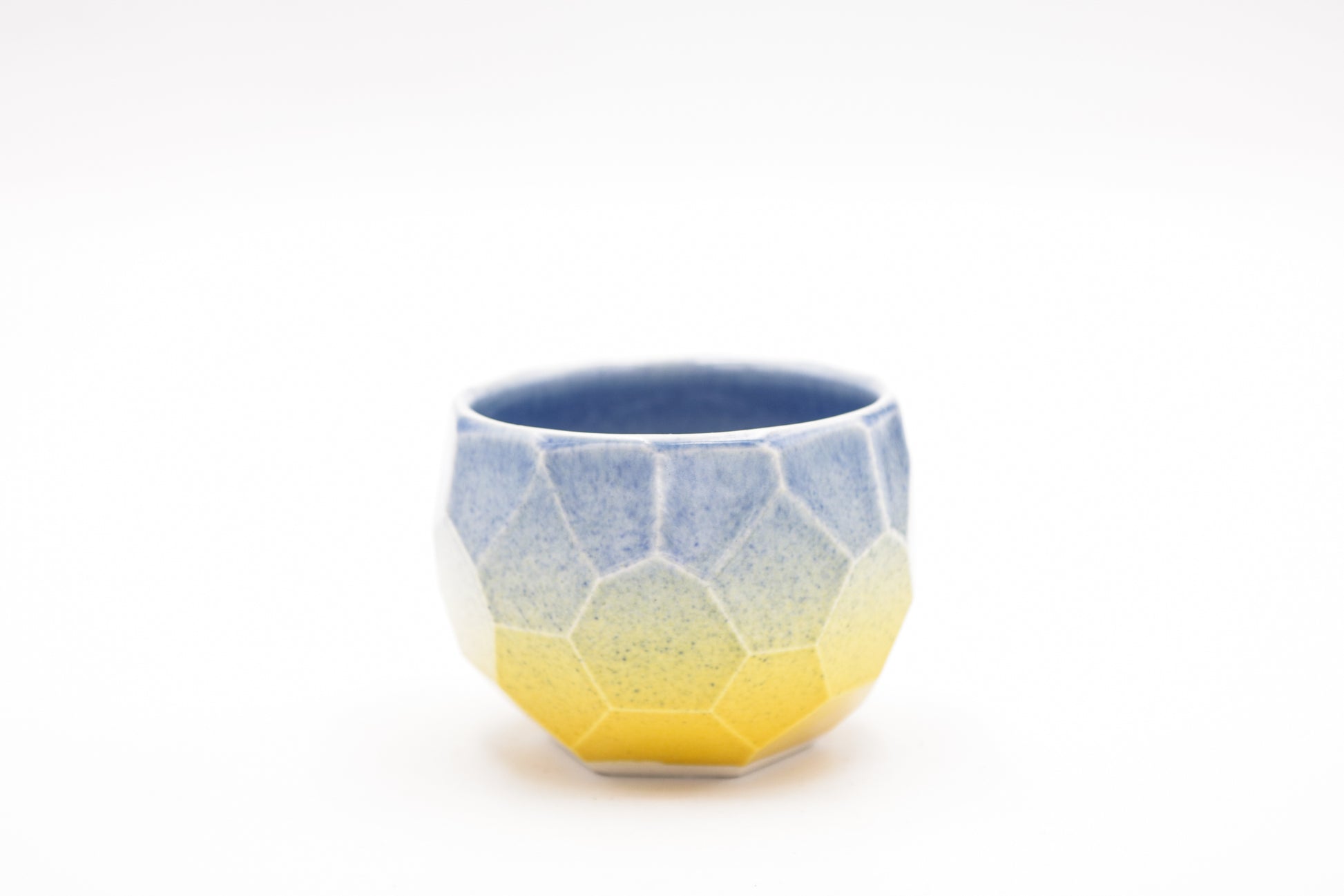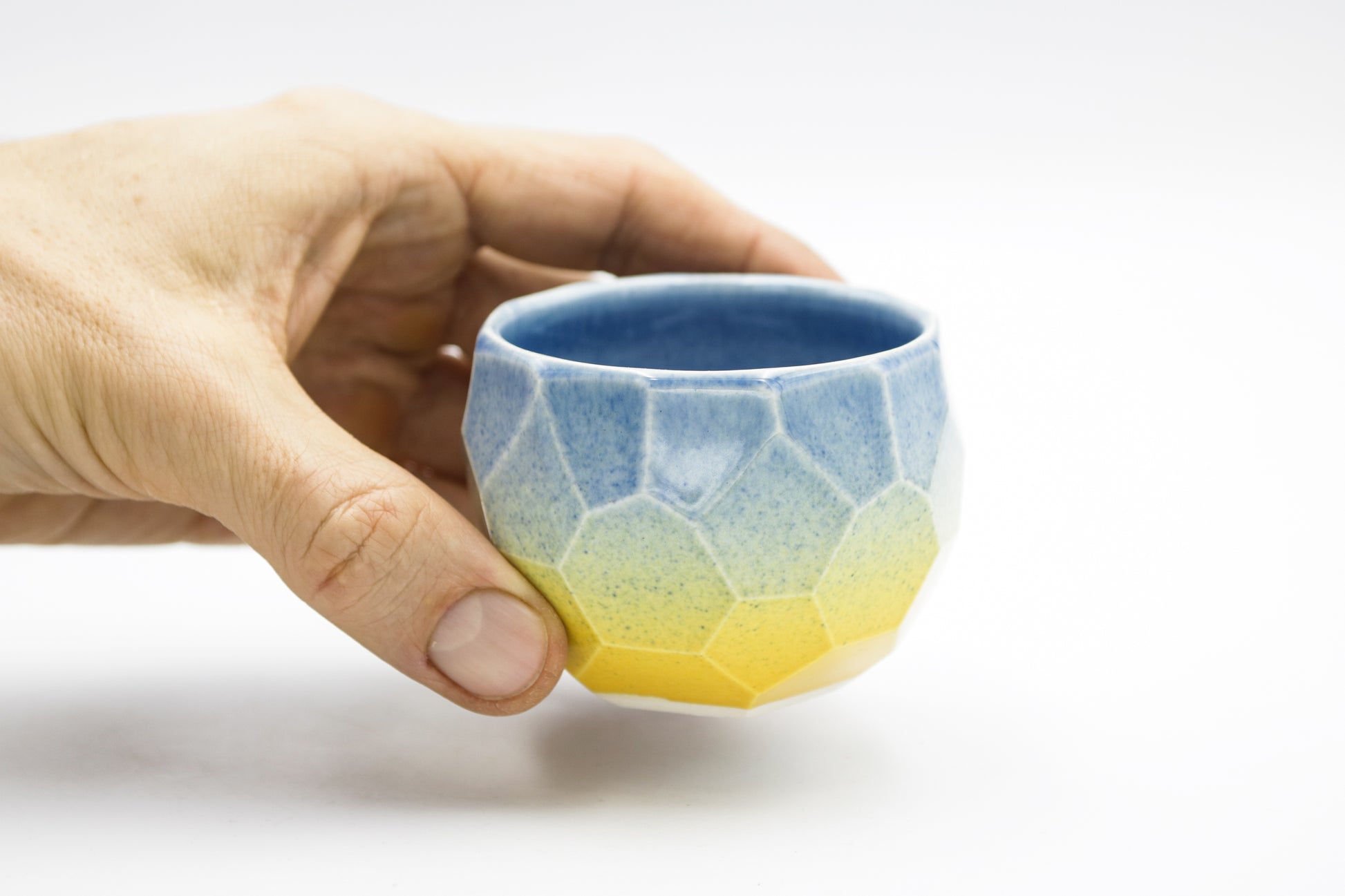 Hand thrown and cut, stoneware cup. Glazed inside and outside.