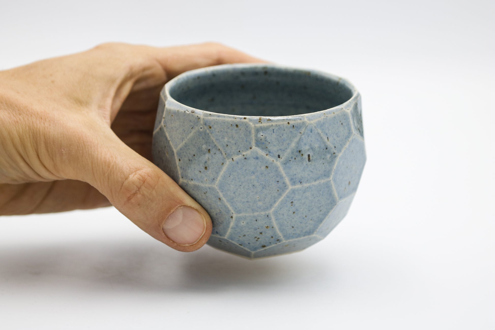 Hand thrown and cut, speckled stoneware cup. Glazed inside and outside. Each piece may be slightly different due to the handmade process.