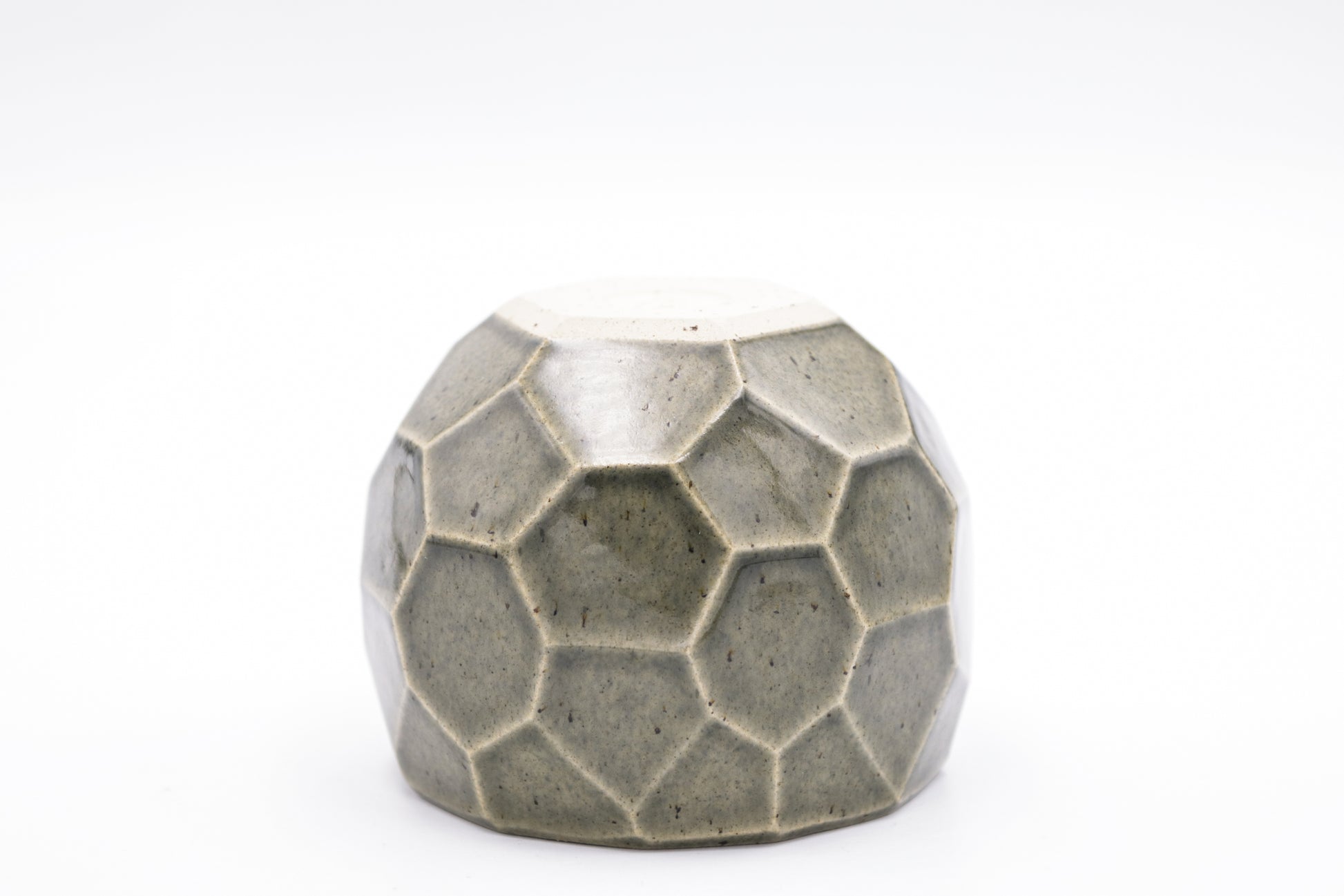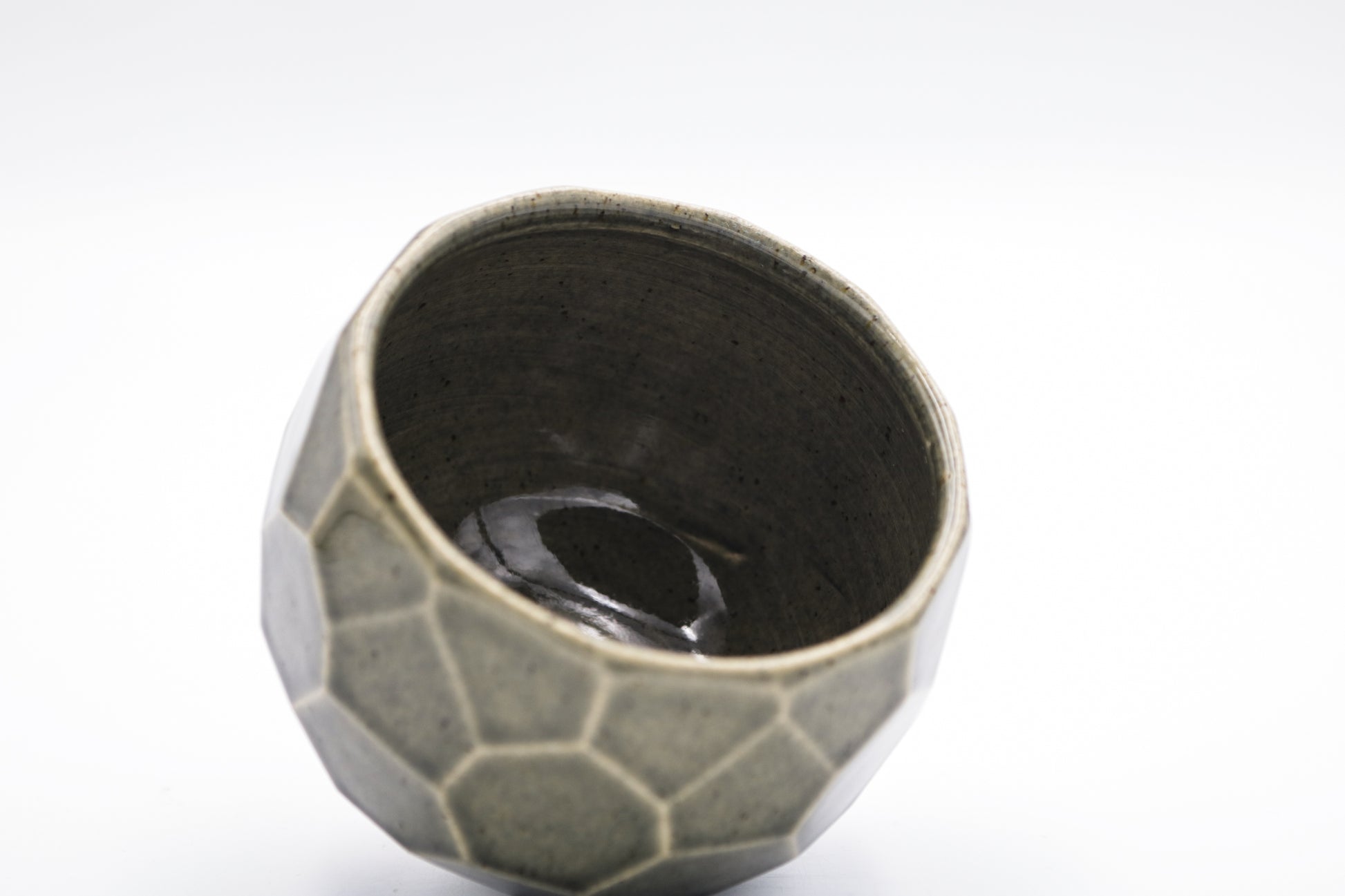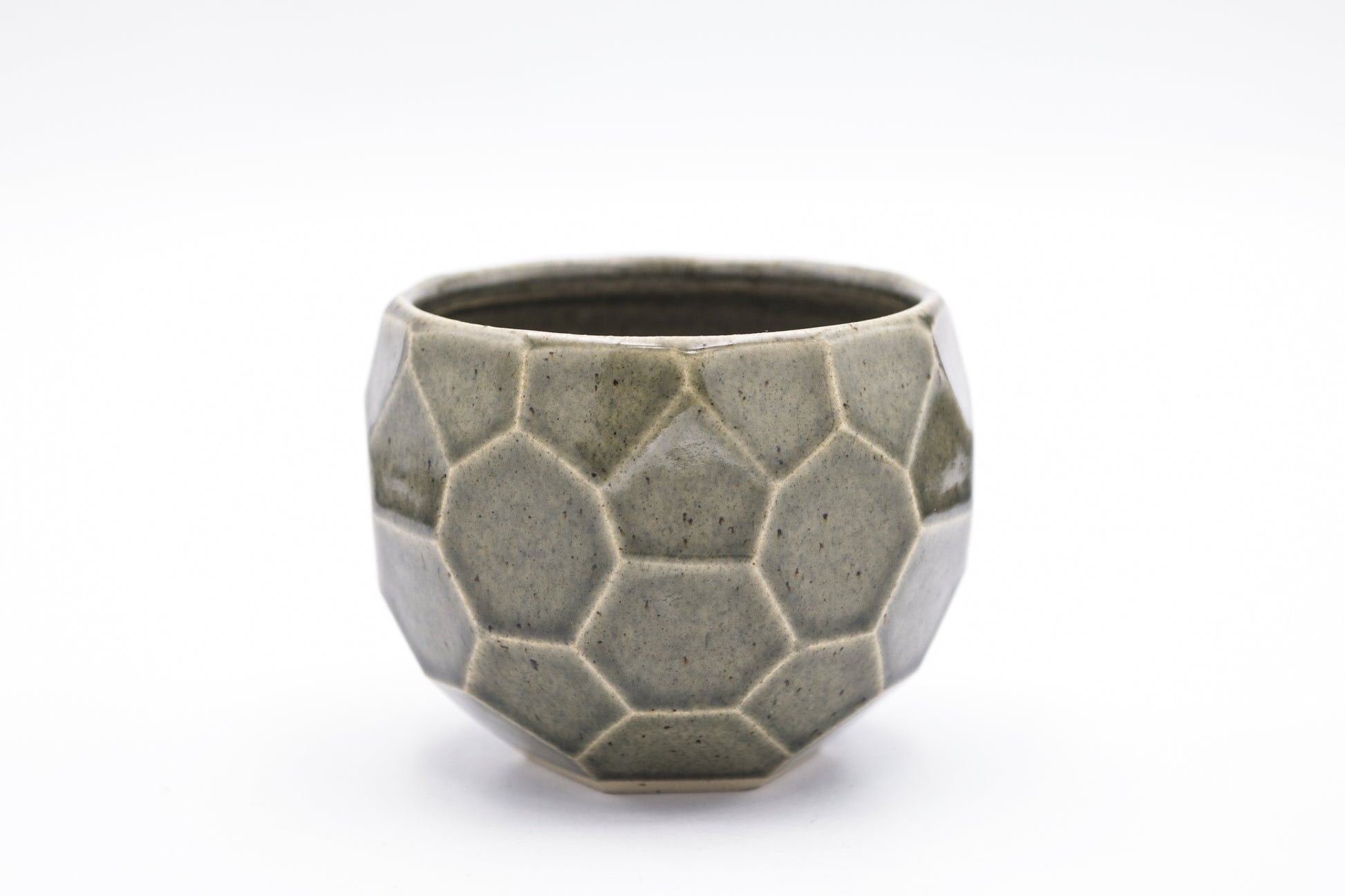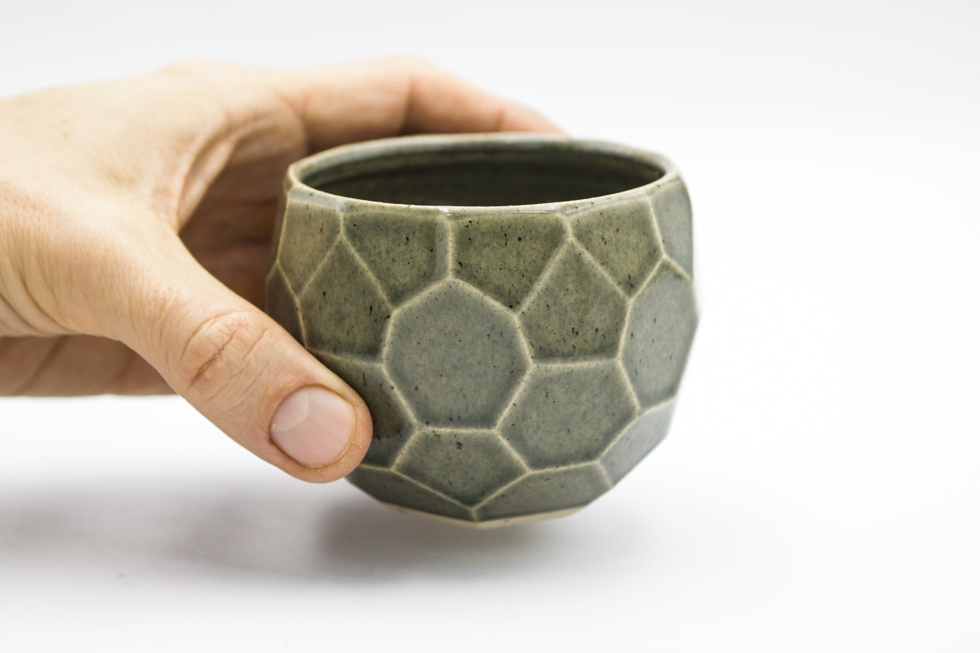 Hand thrown and cut, faceted stoneware cup. Glazed inside and outside. Each piece may be slightly different due to the handmade process.