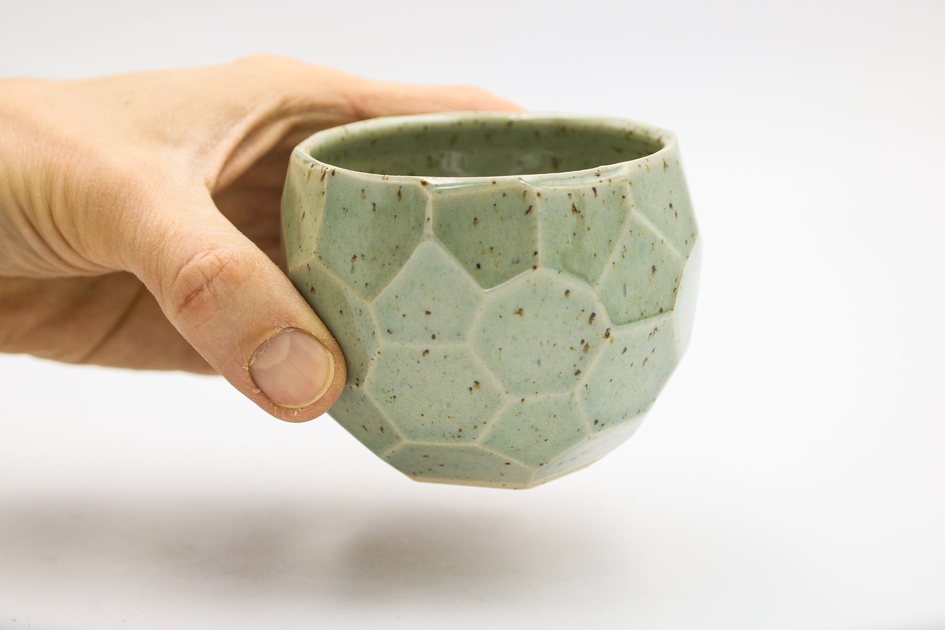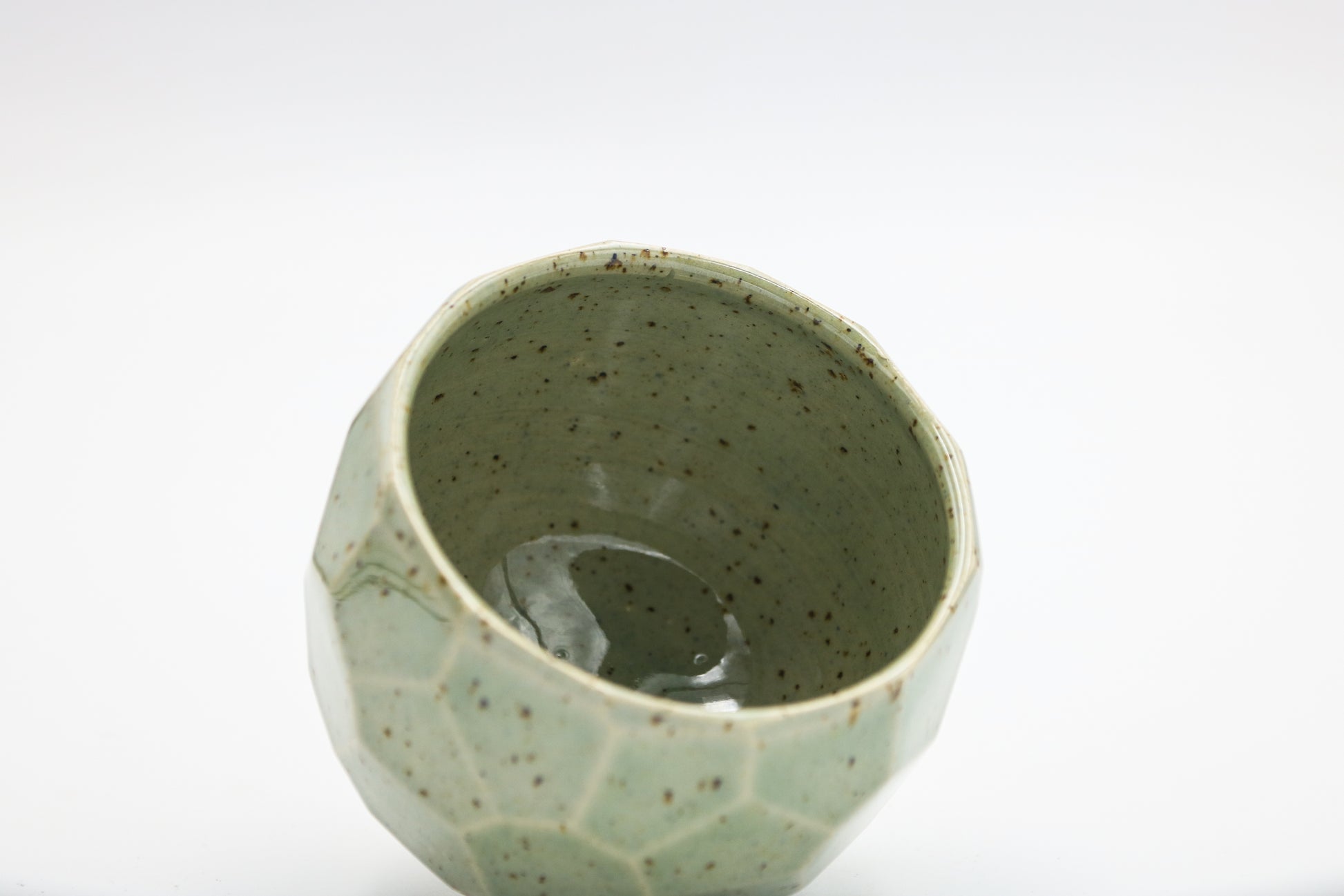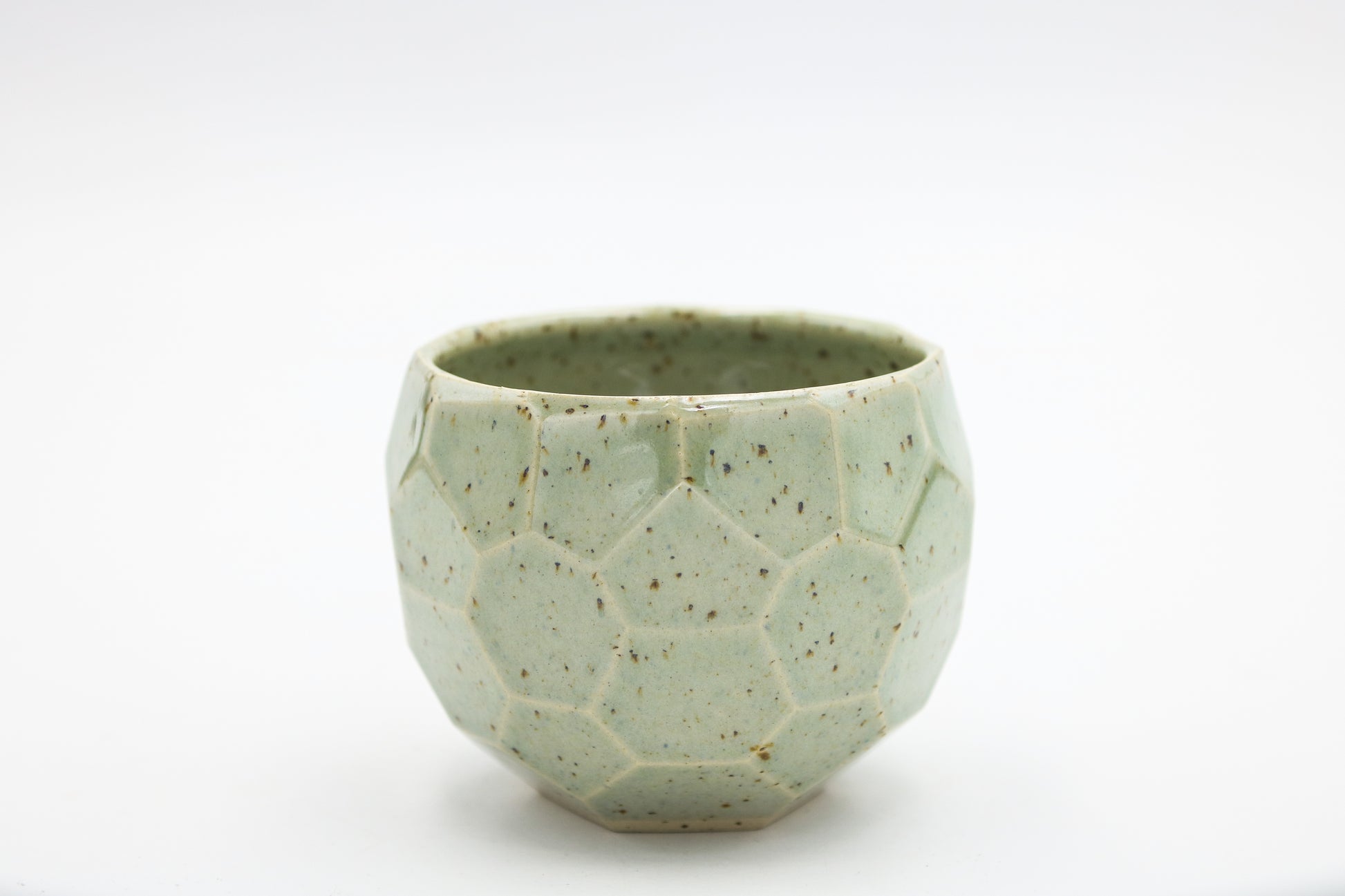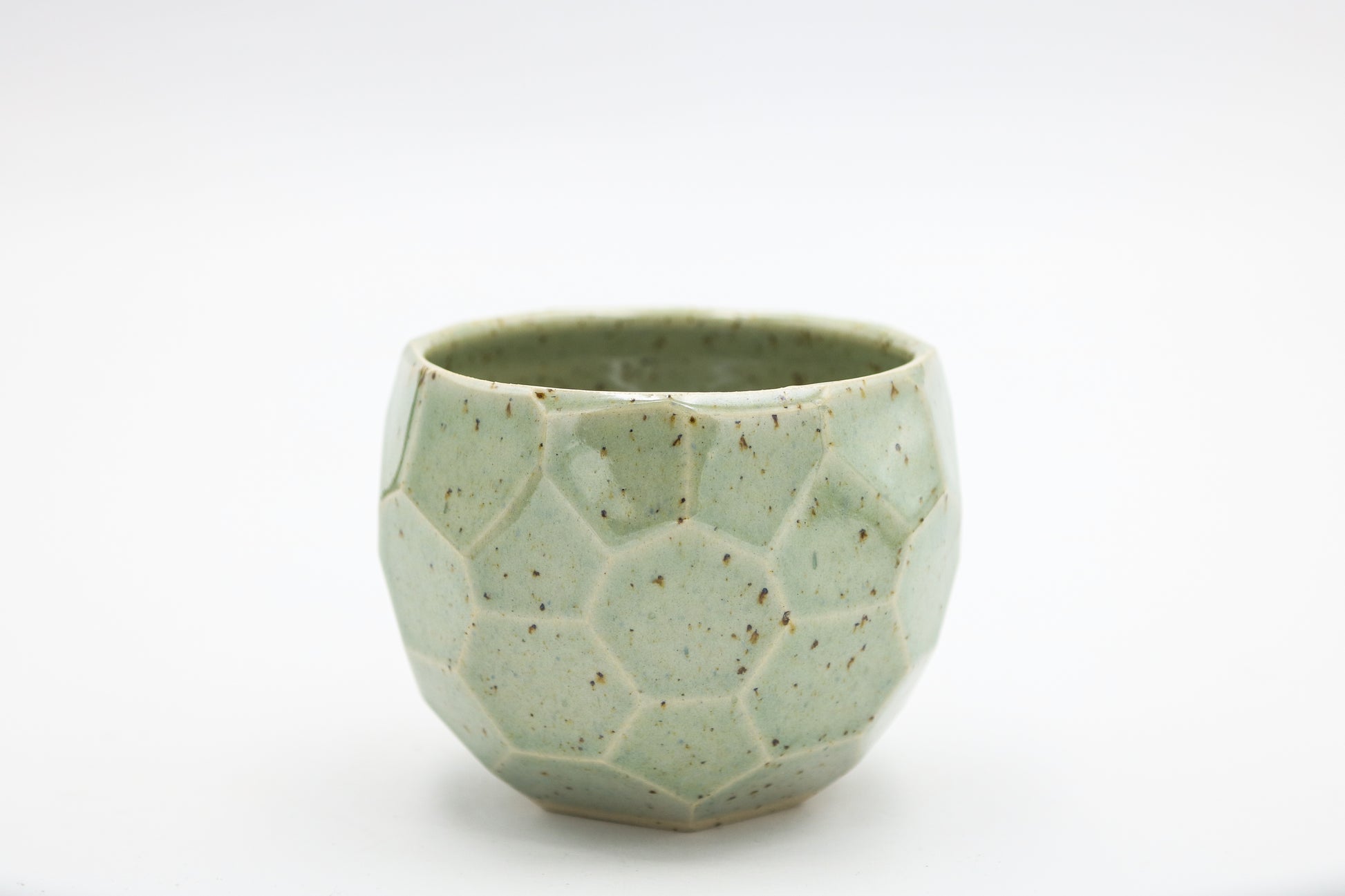 Hand thrown and cut, speckled stoneware cup. Glazed inside and outside. Each piece may be slightly different due to the handmade process.