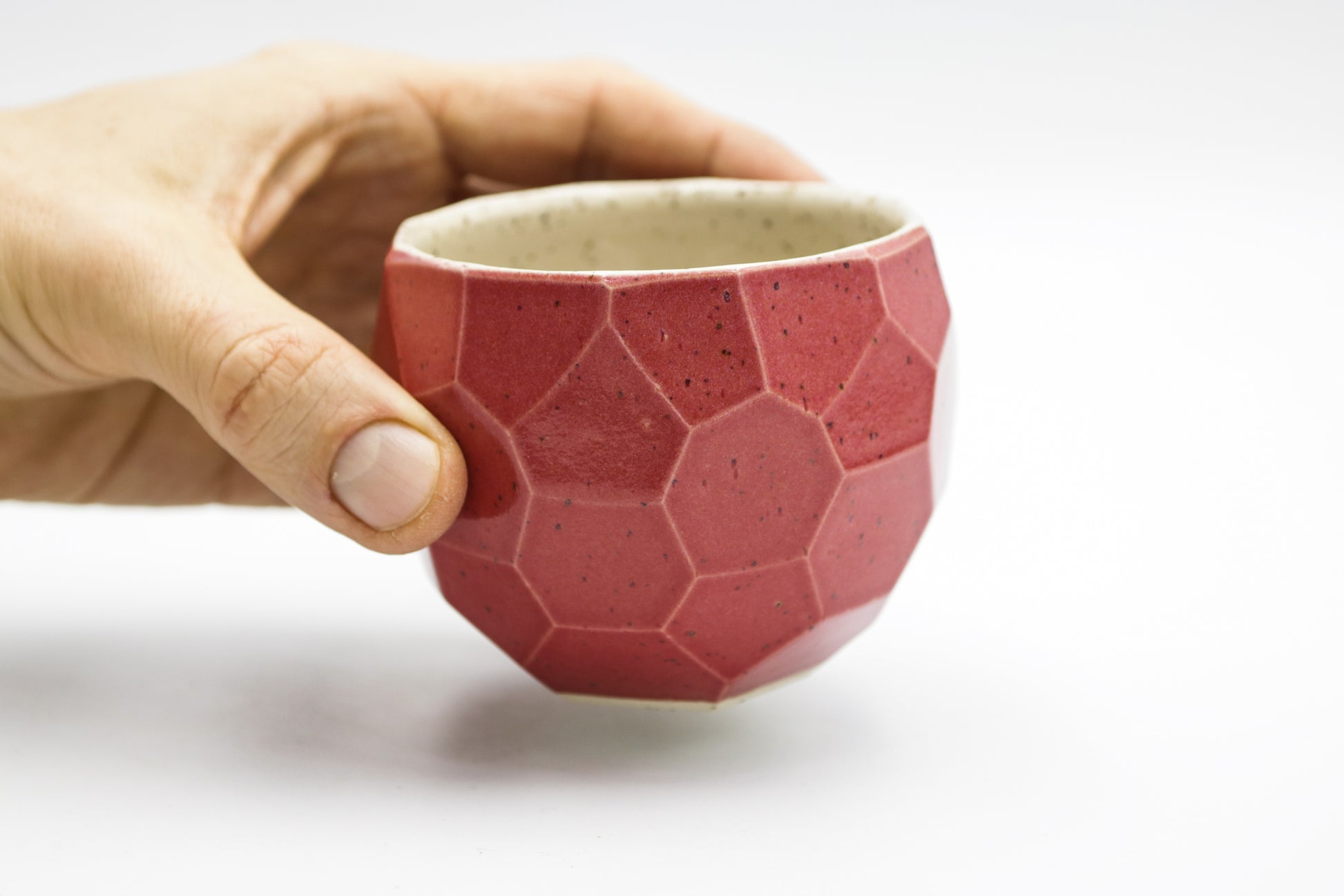 Hand thrown, and cut stoneware Goro cup, glazed inside and outside. Each piece may be slightly different due to the handmade process.