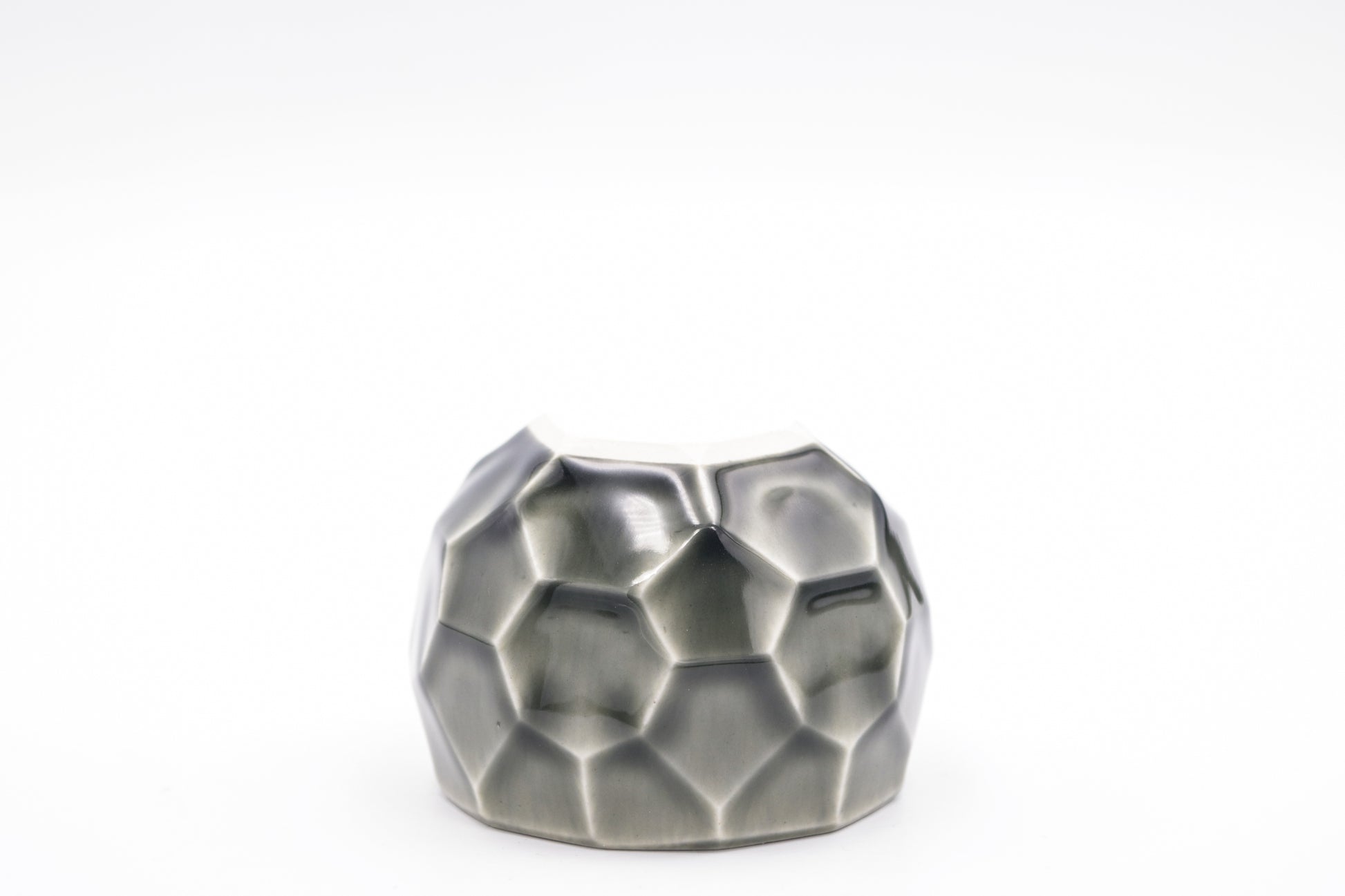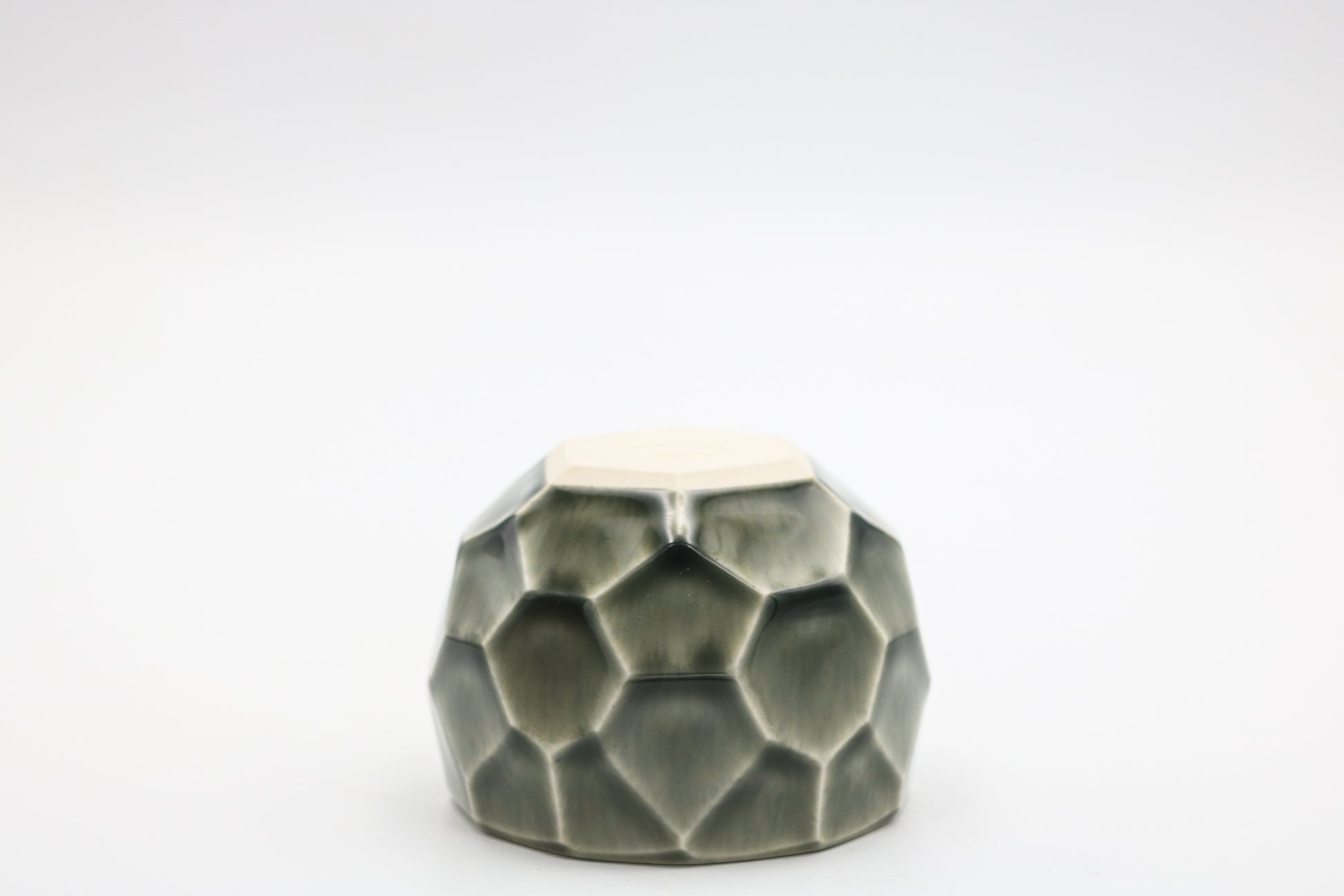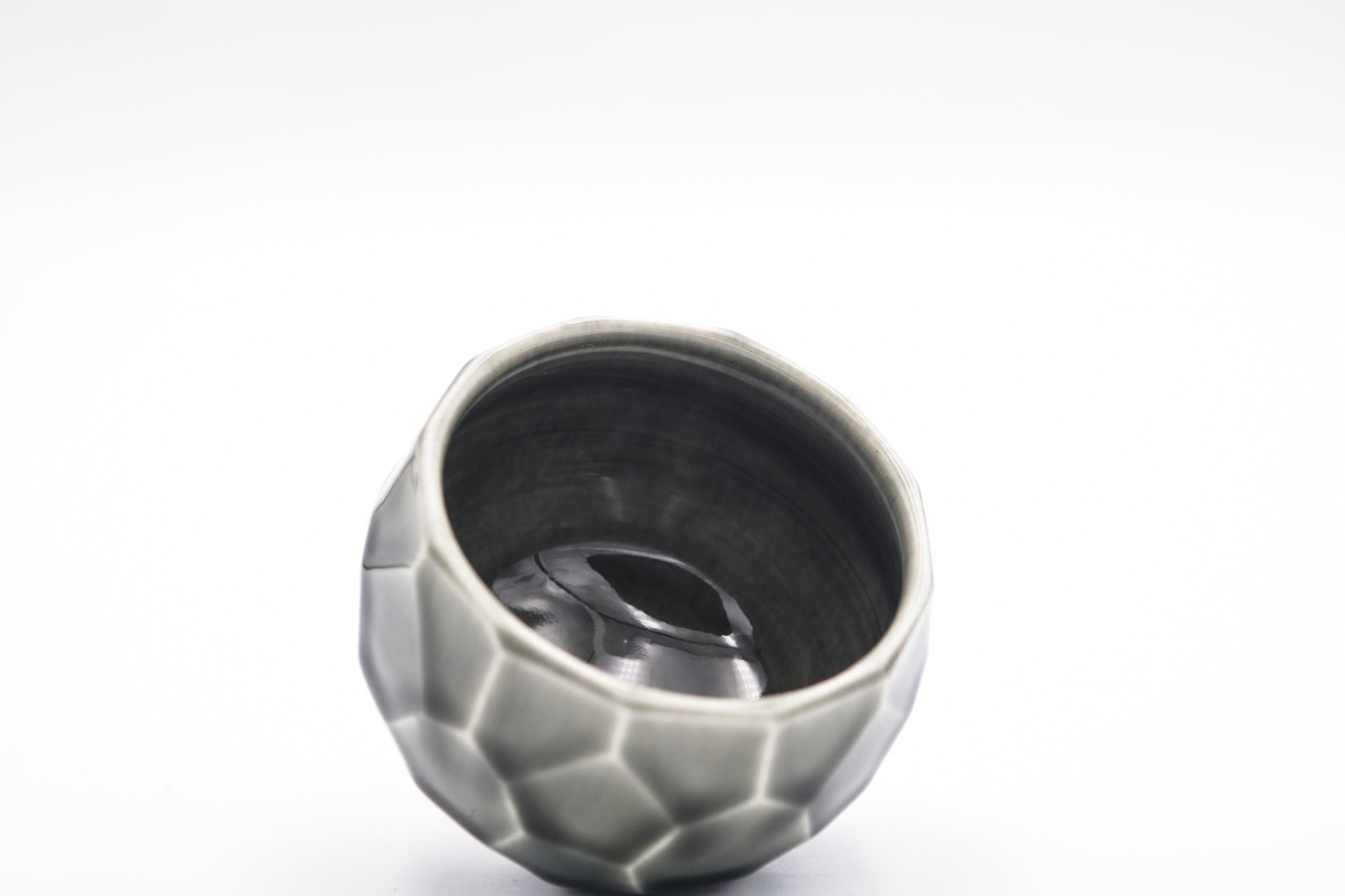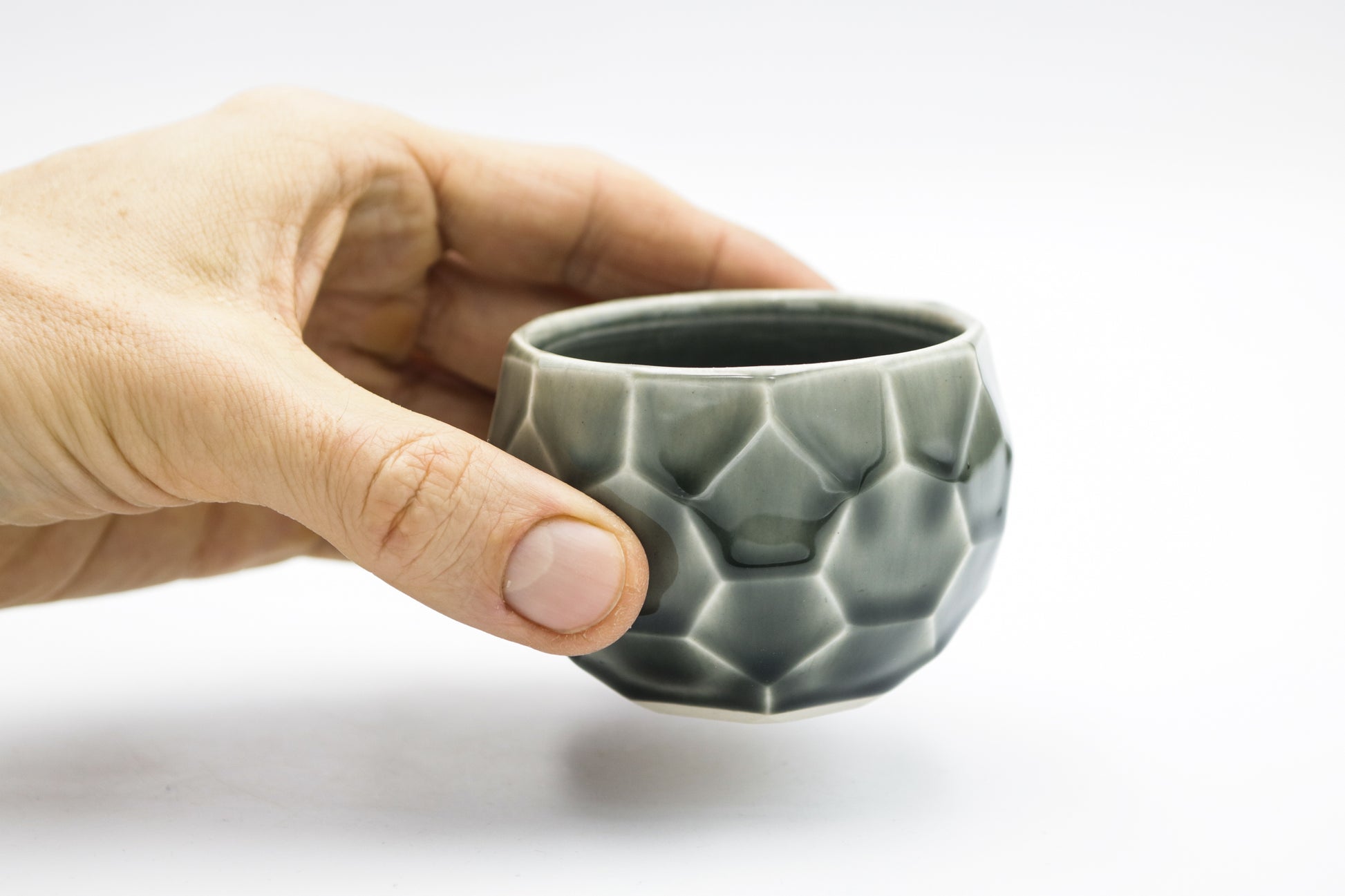 Hand thrown and cut, faceted stoneware cup. Glazed inside and outside. Each piece may be slightly different due to the handmade process.