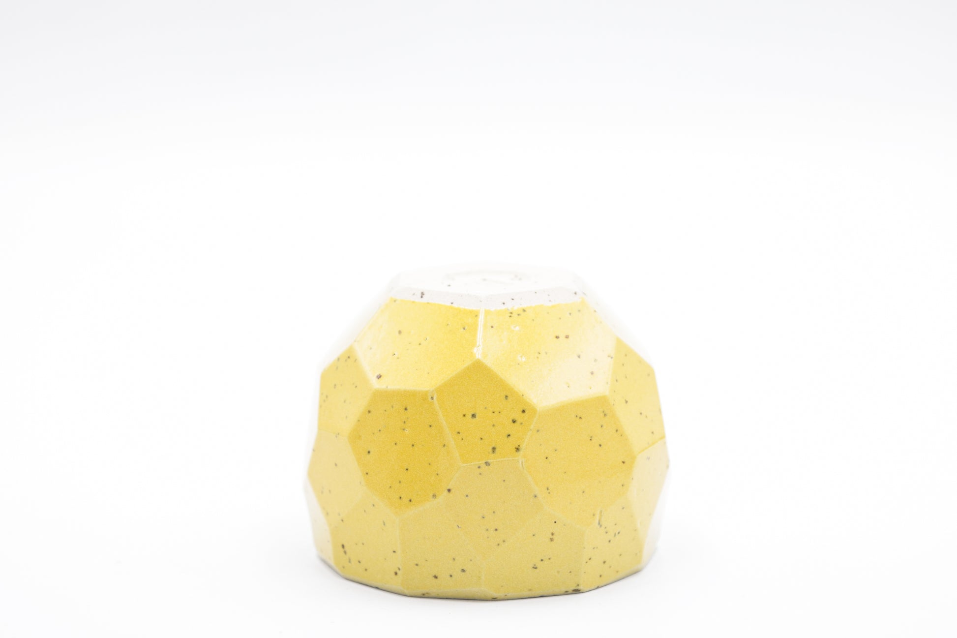 Hand thrown and cut, faceted stoneware cup. Glazed inside and outside.