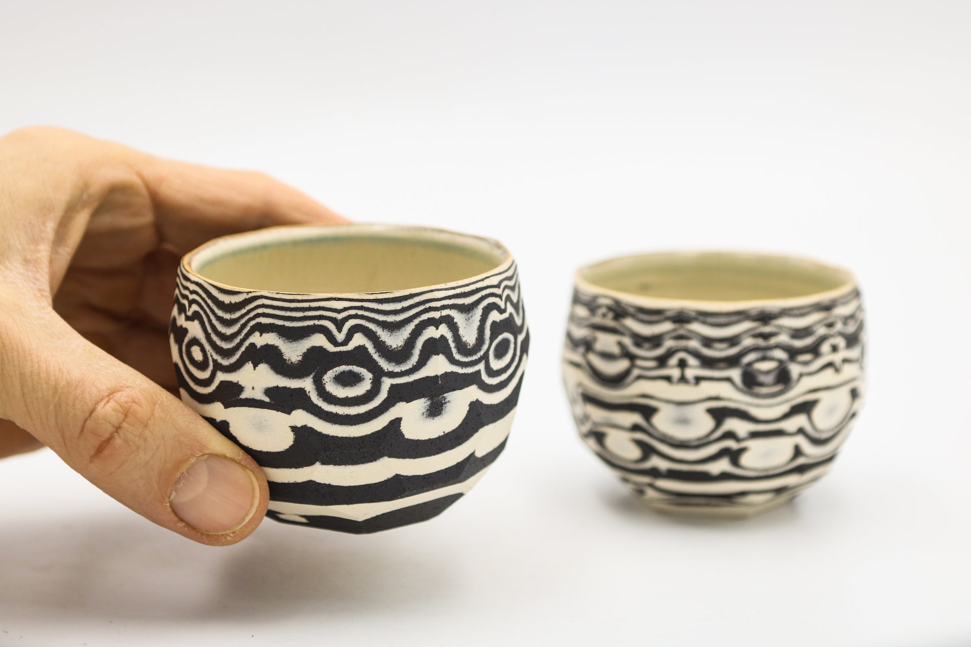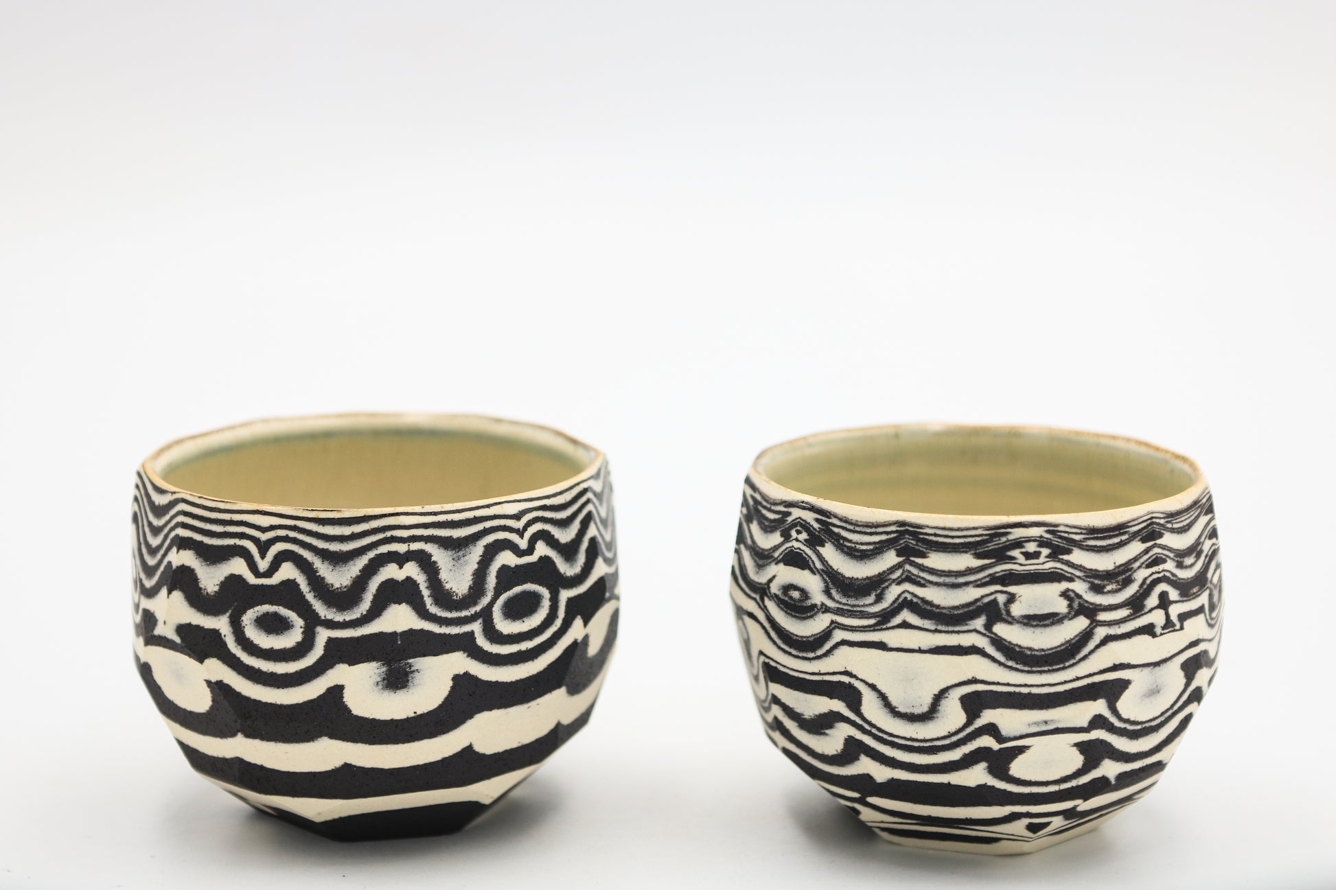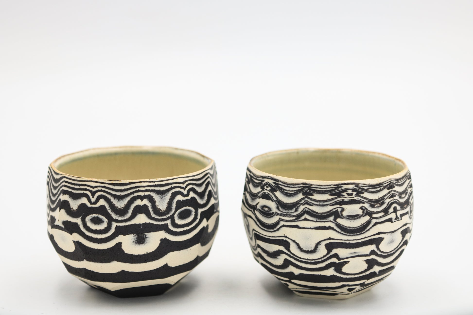 Hand thrown and cut, black and white mixed stoneware cup set of two.