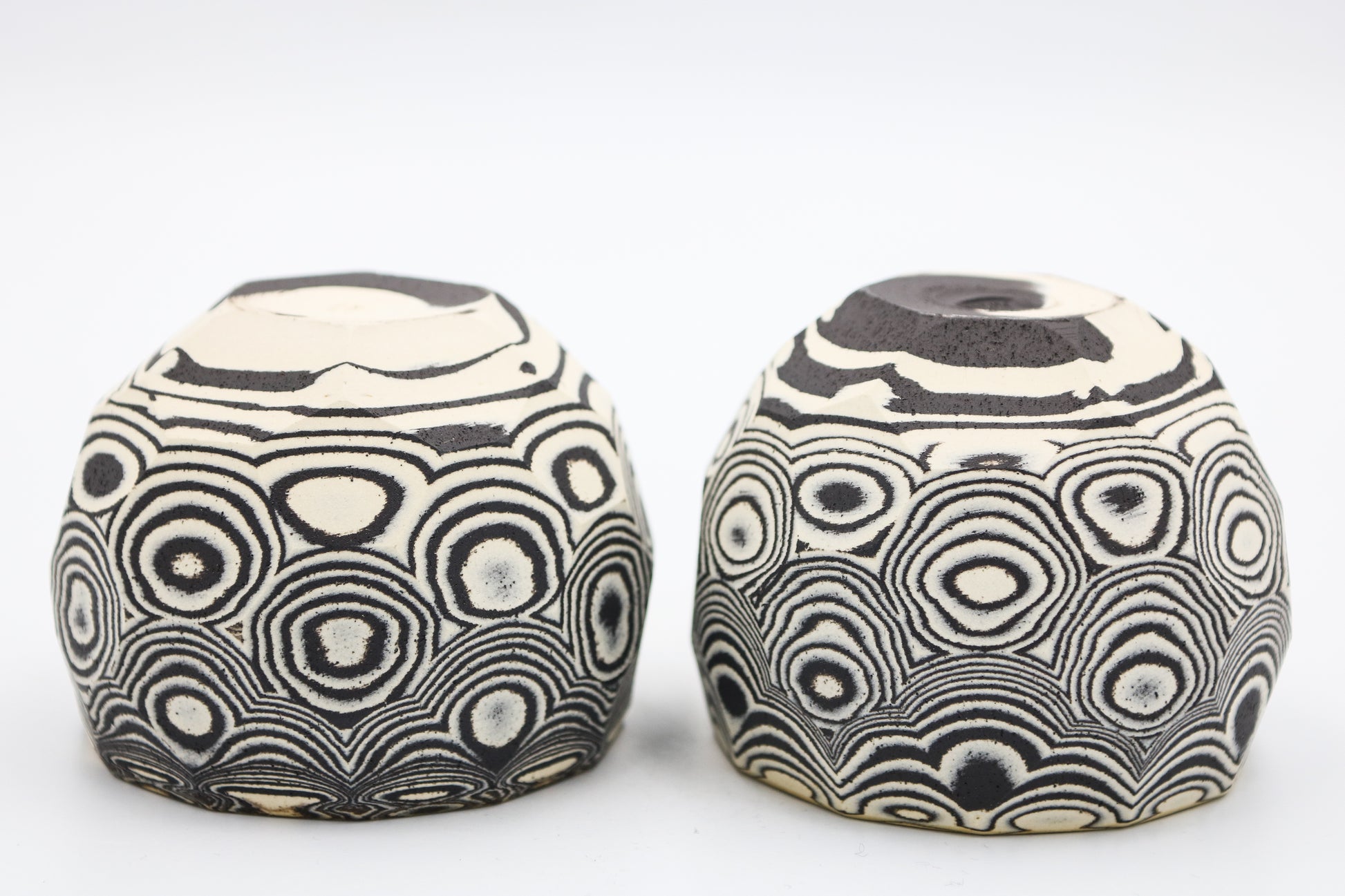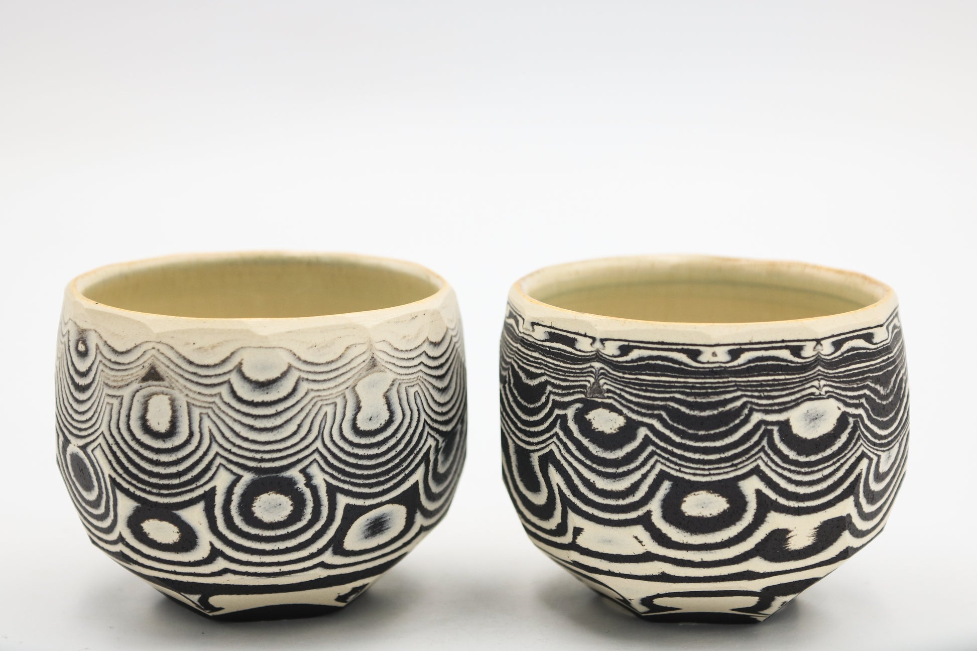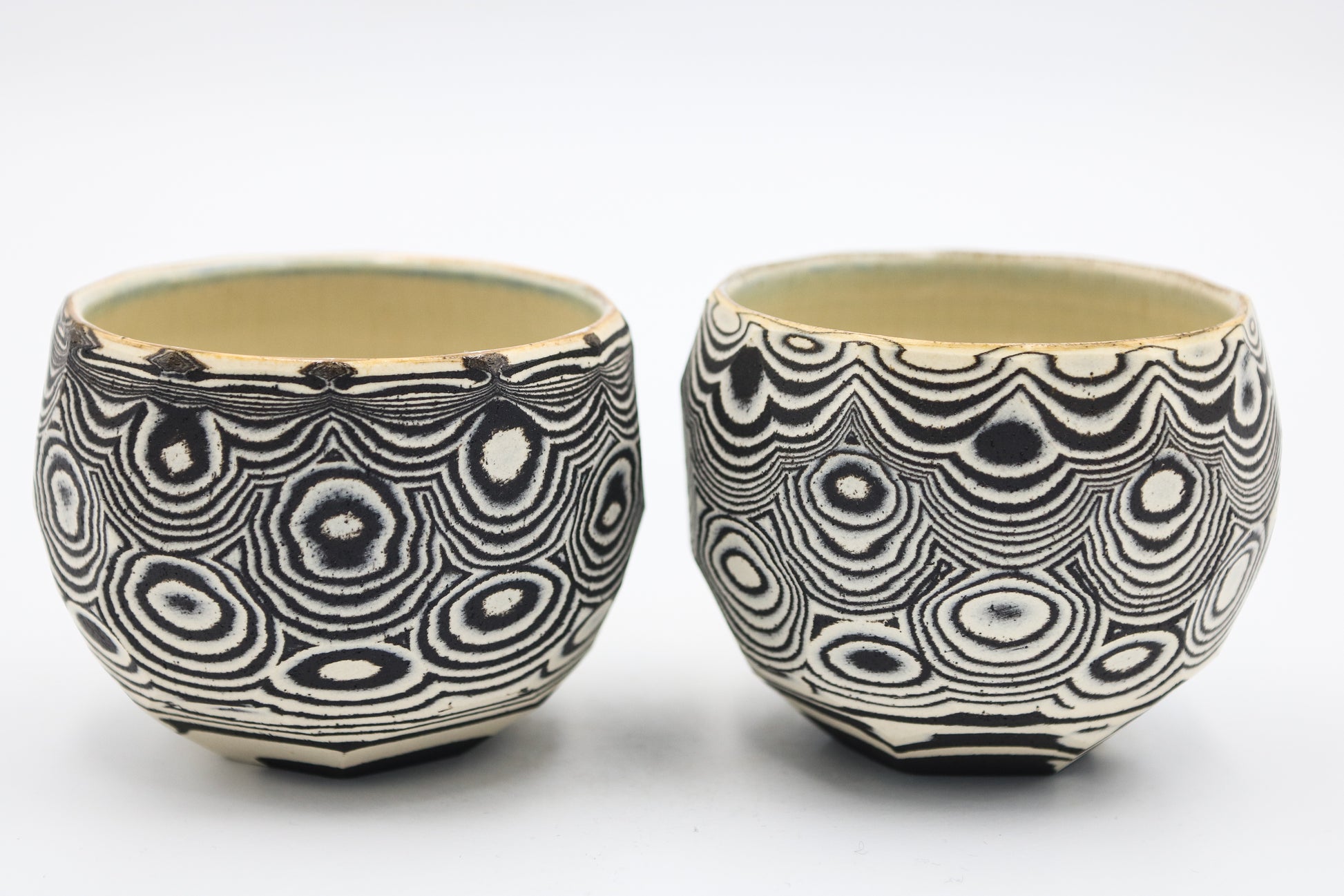 Hand thrown and cut, black and white mixed stoneware cup set of 2.