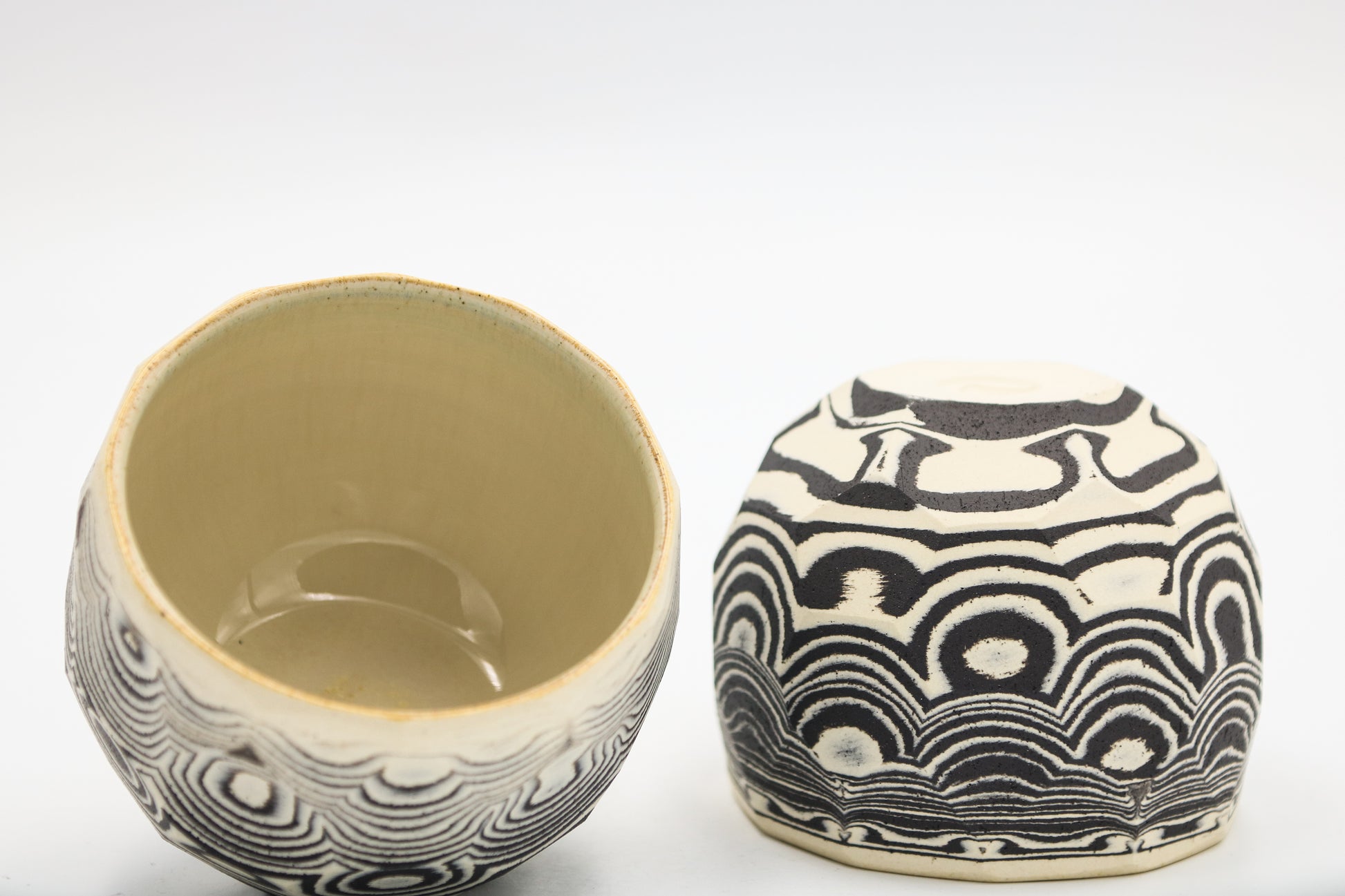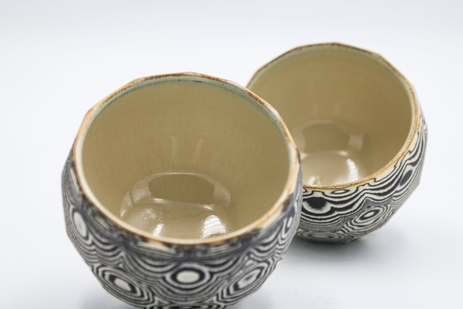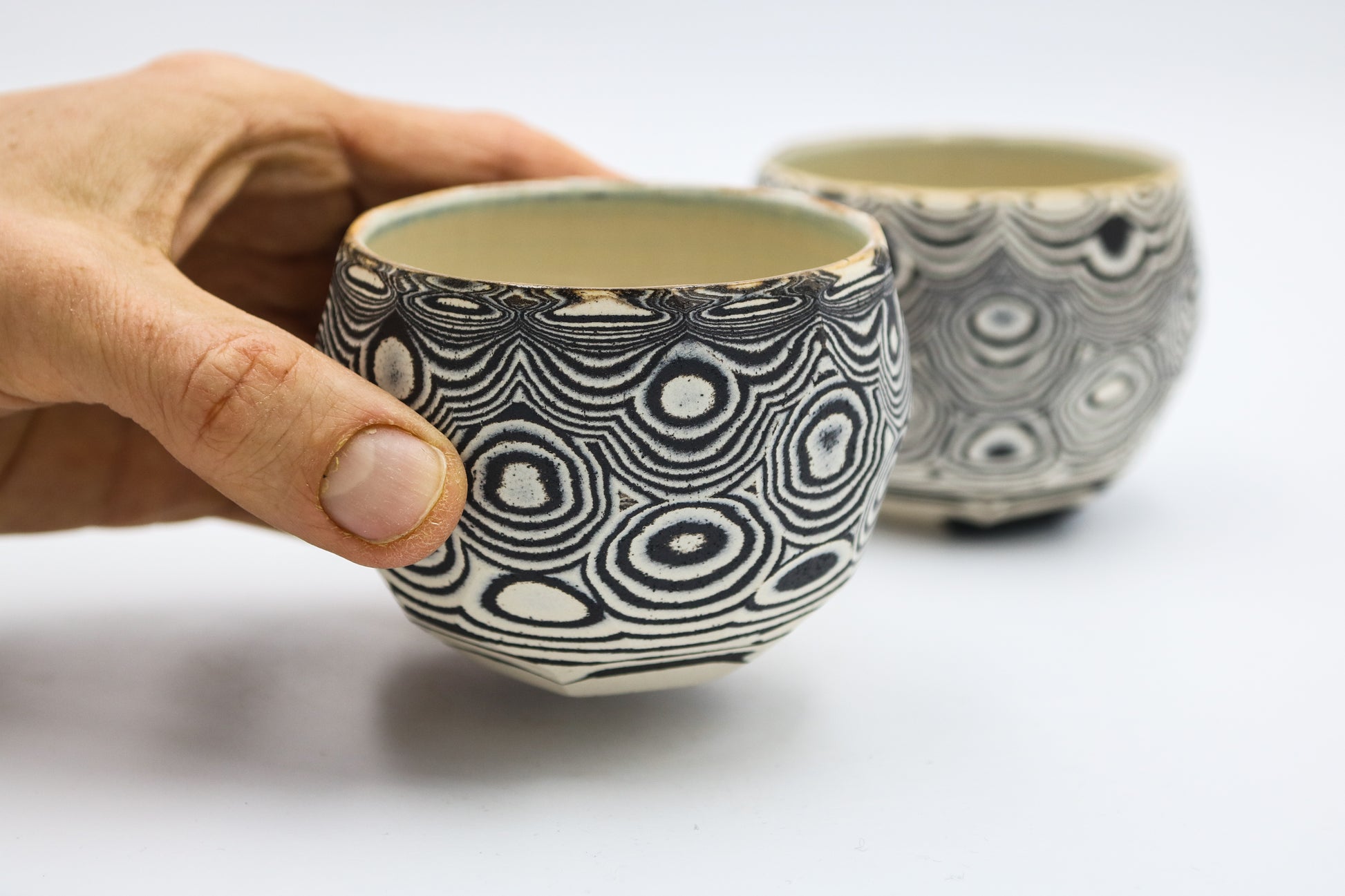 Hand thrown and cut, black and white mixed stoneware cup set of 2.