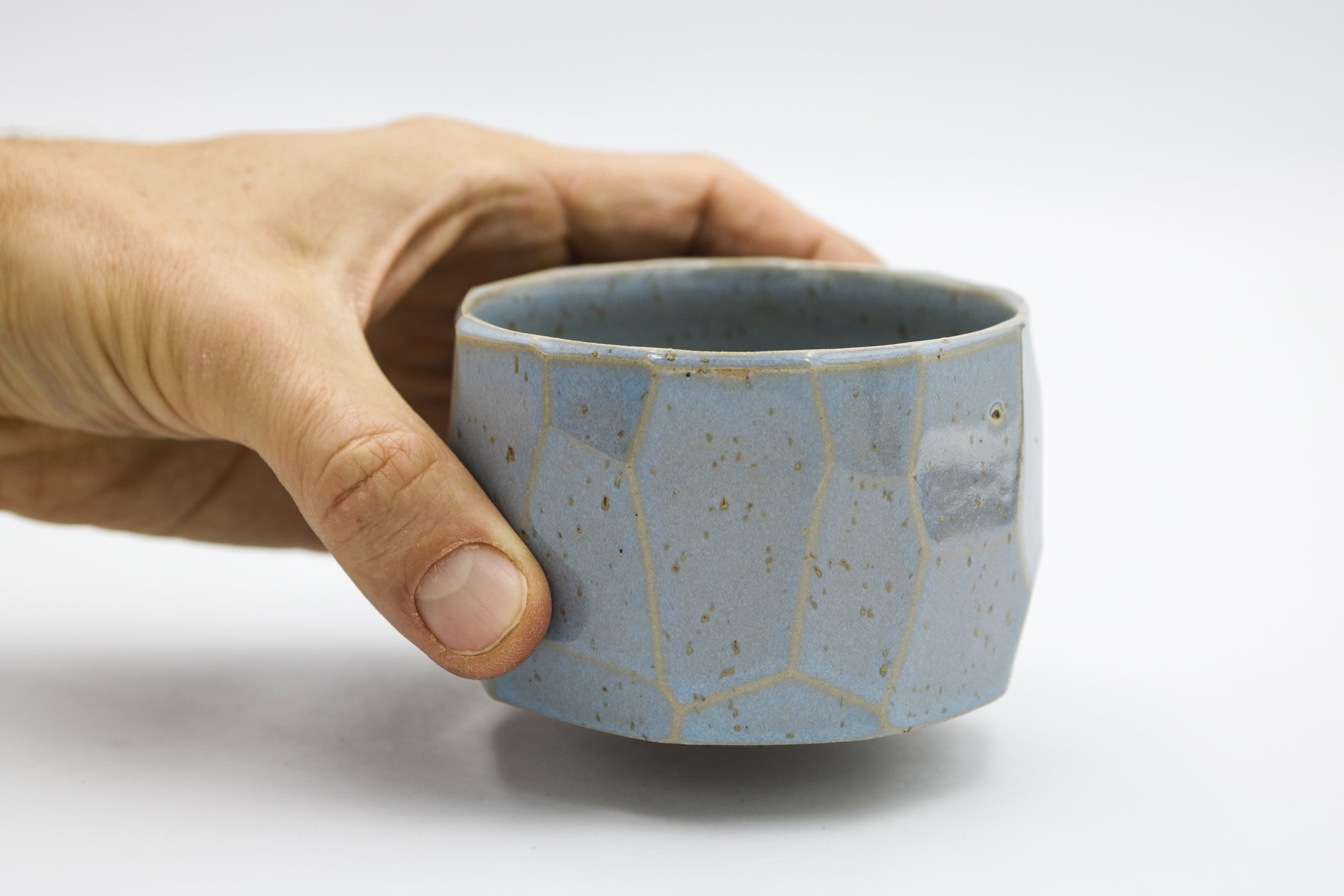 Hand thrown and cut stoneware cup. Glazed inside and outside. Ideal size and shape for matcha. One of a kind.