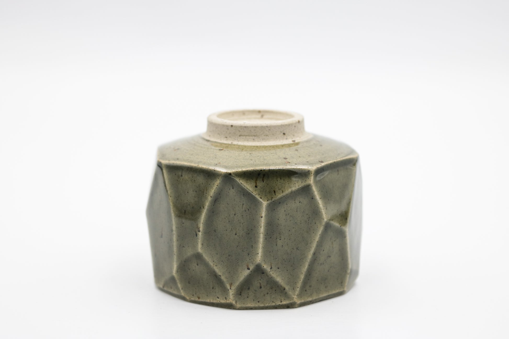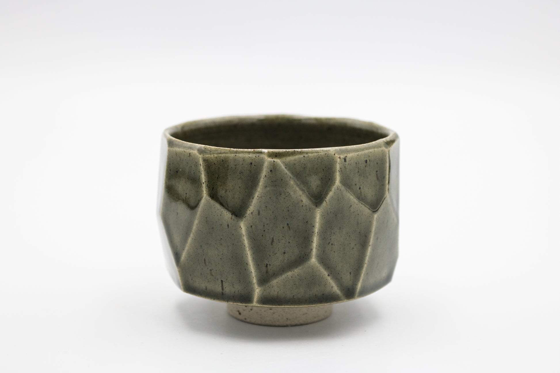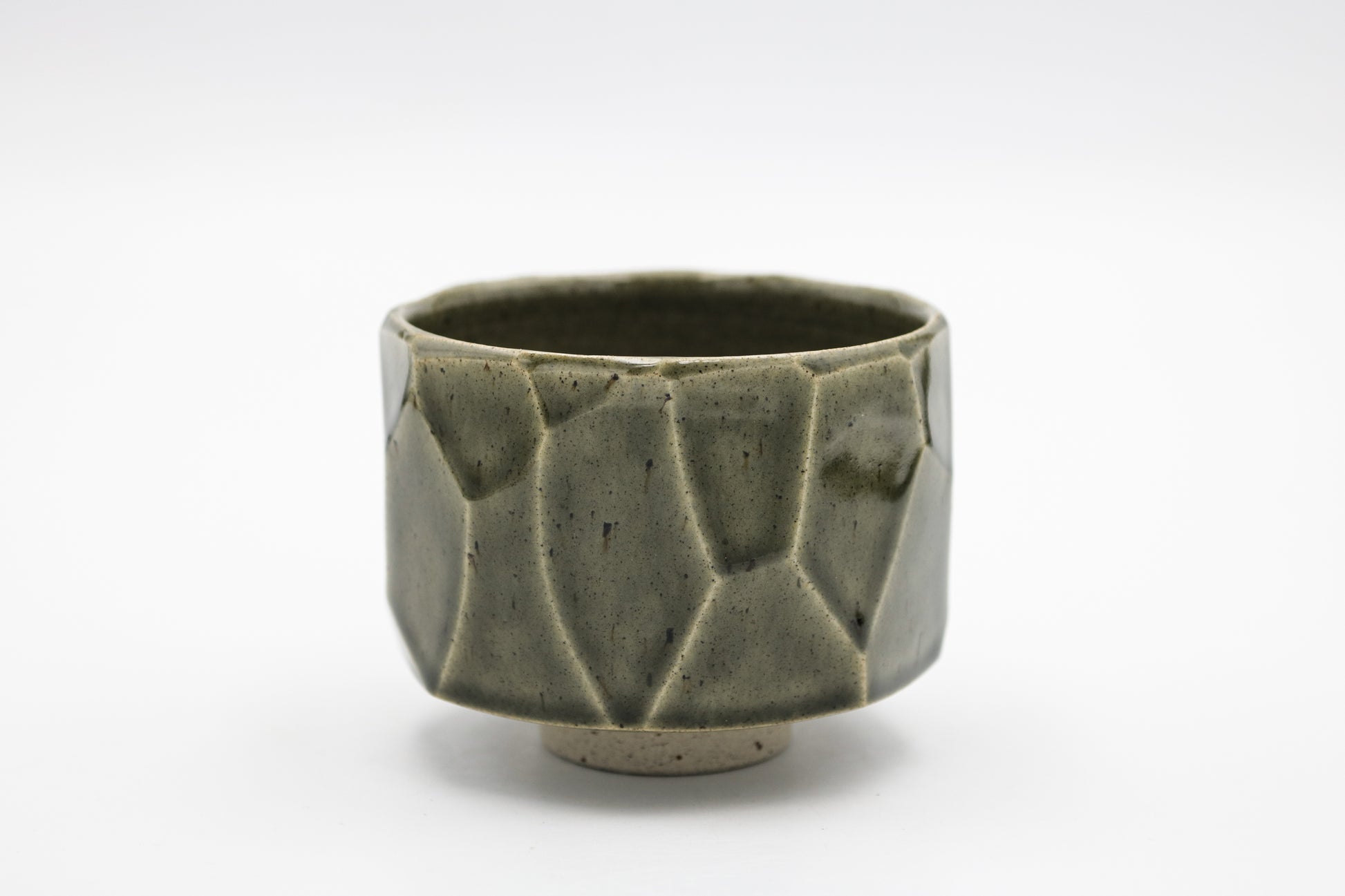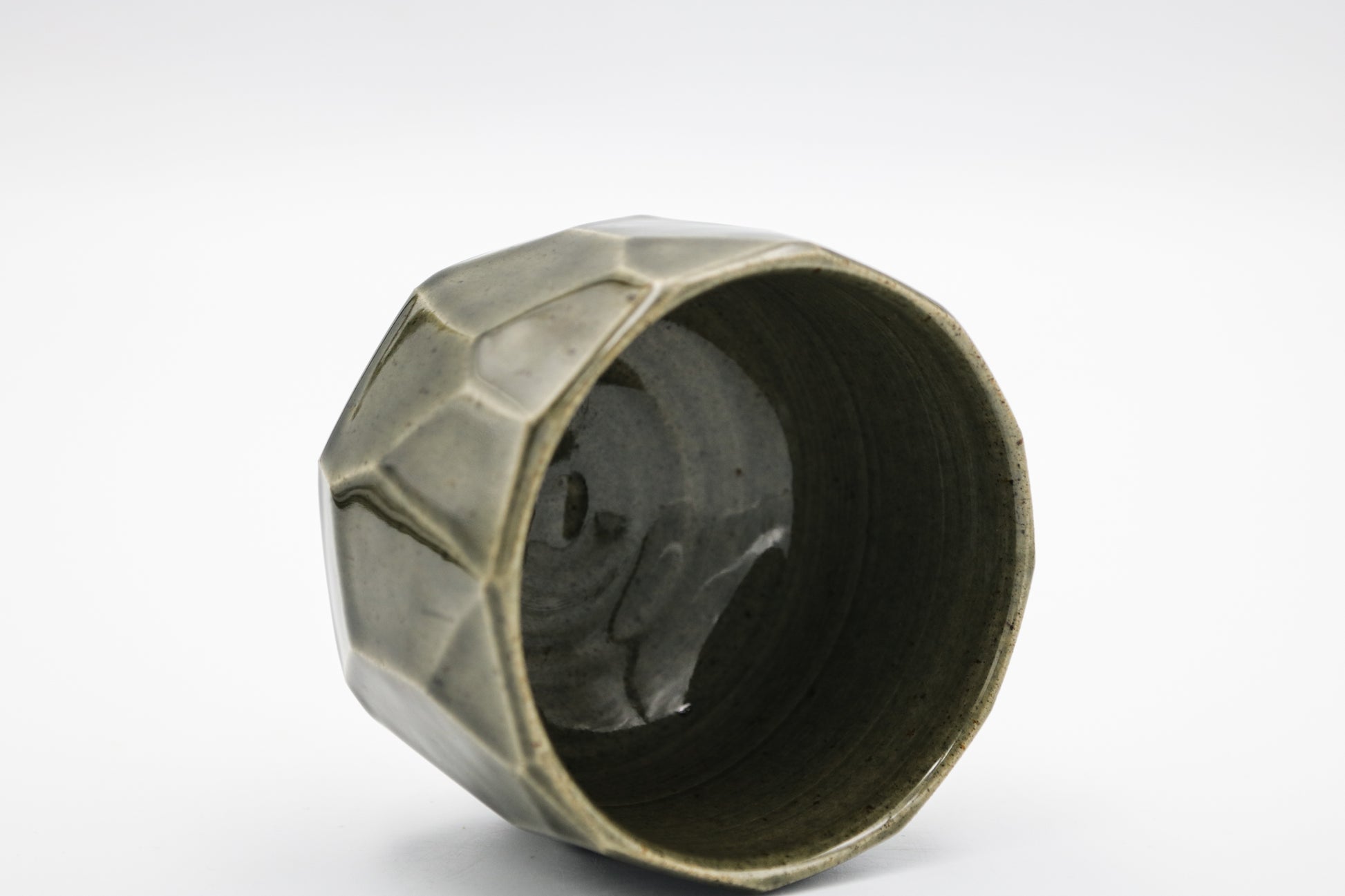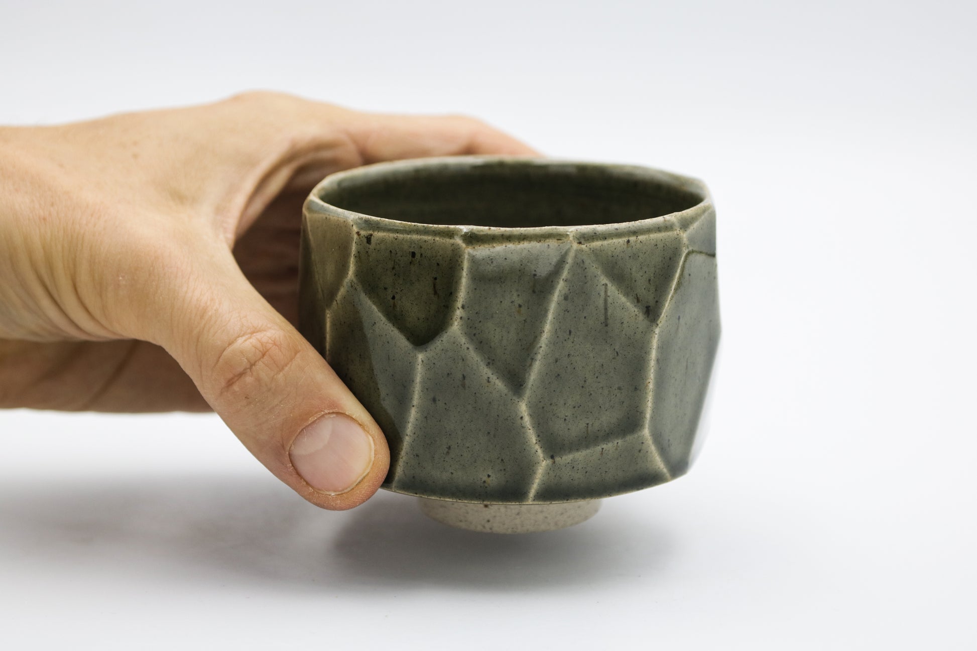 Hand thrown and cut stoneware cup. Glazed inside and outside.