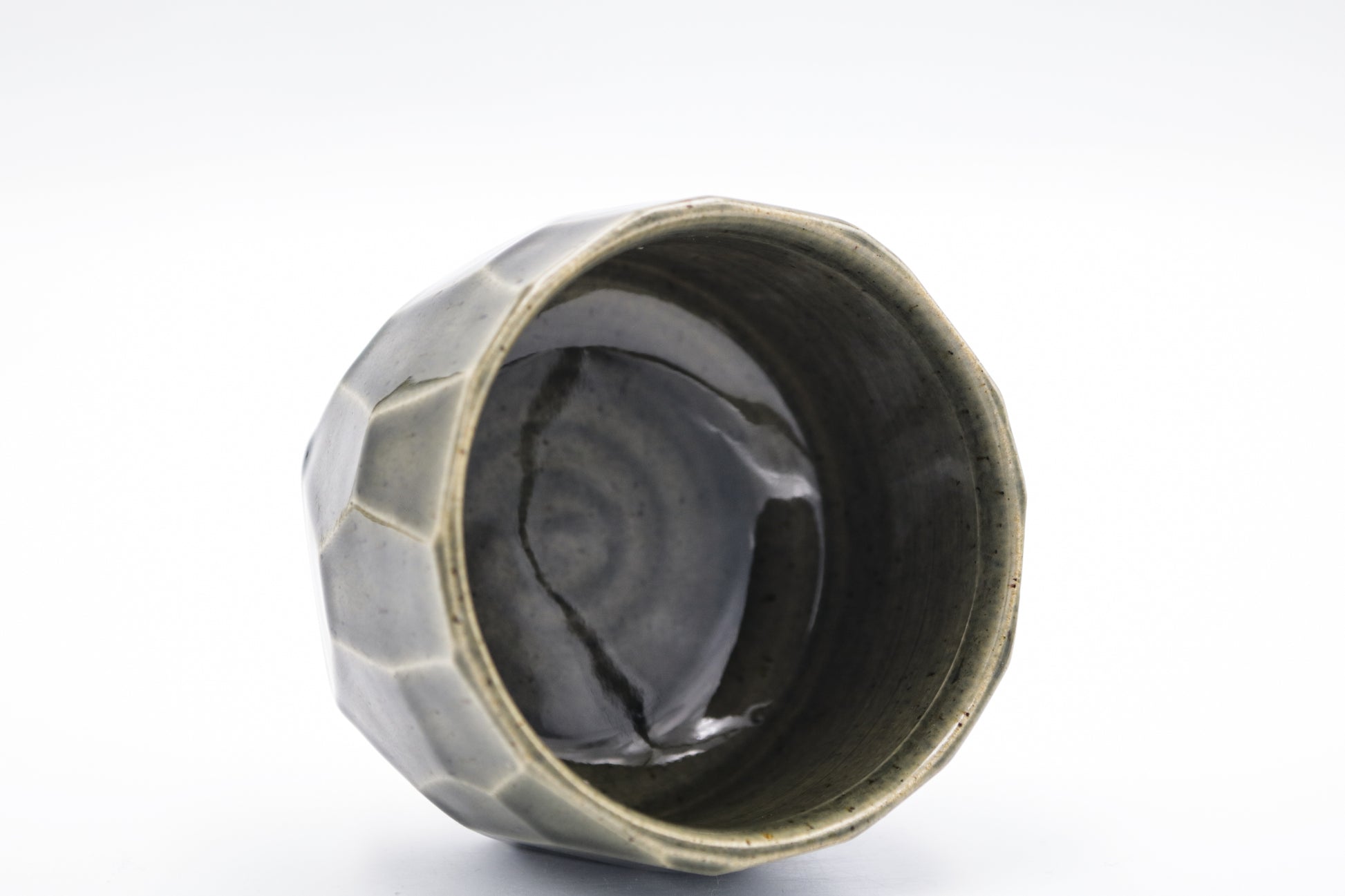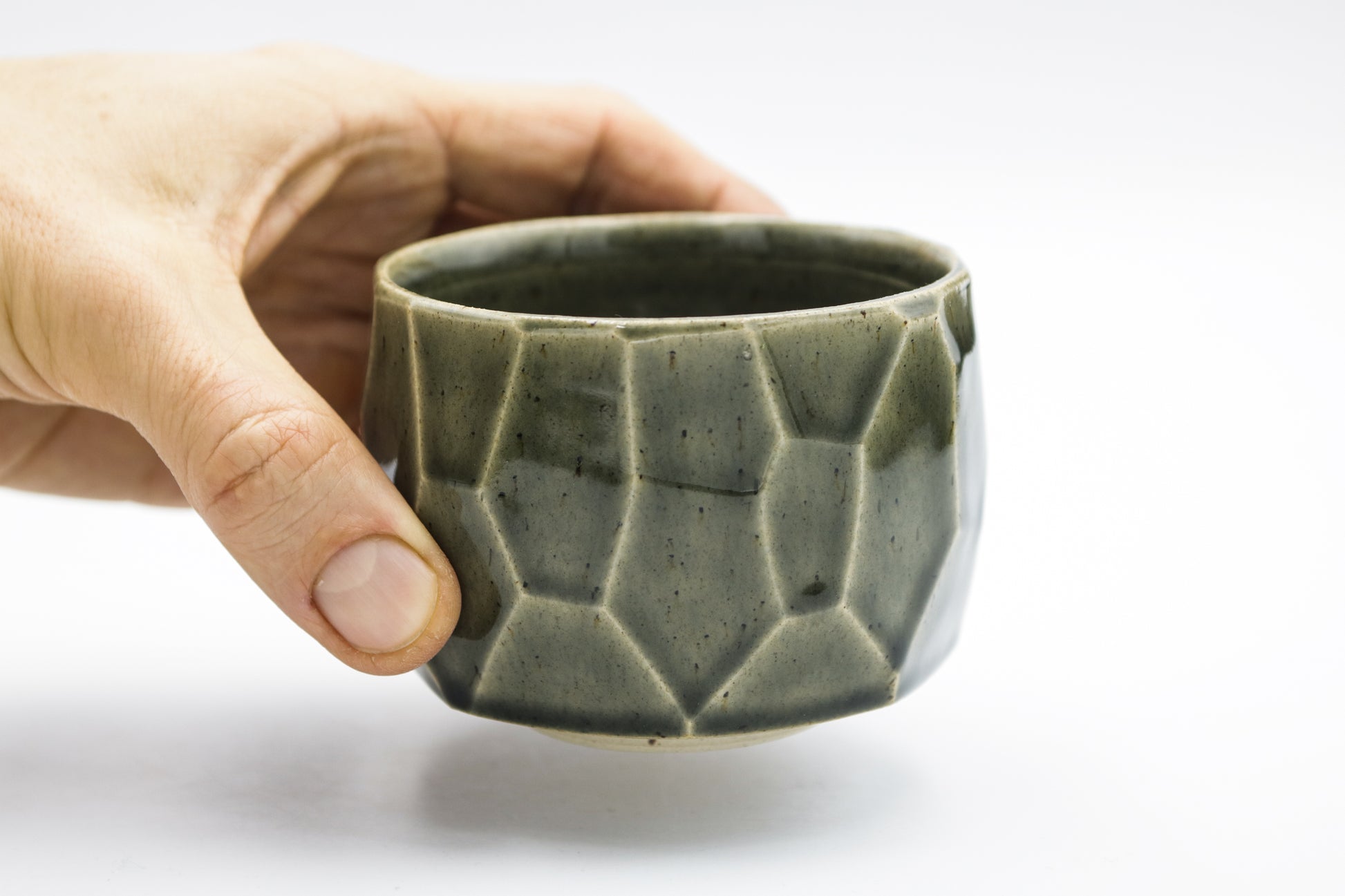 Hand thrown and cut, stoneware cup. Glazed inside and outside.