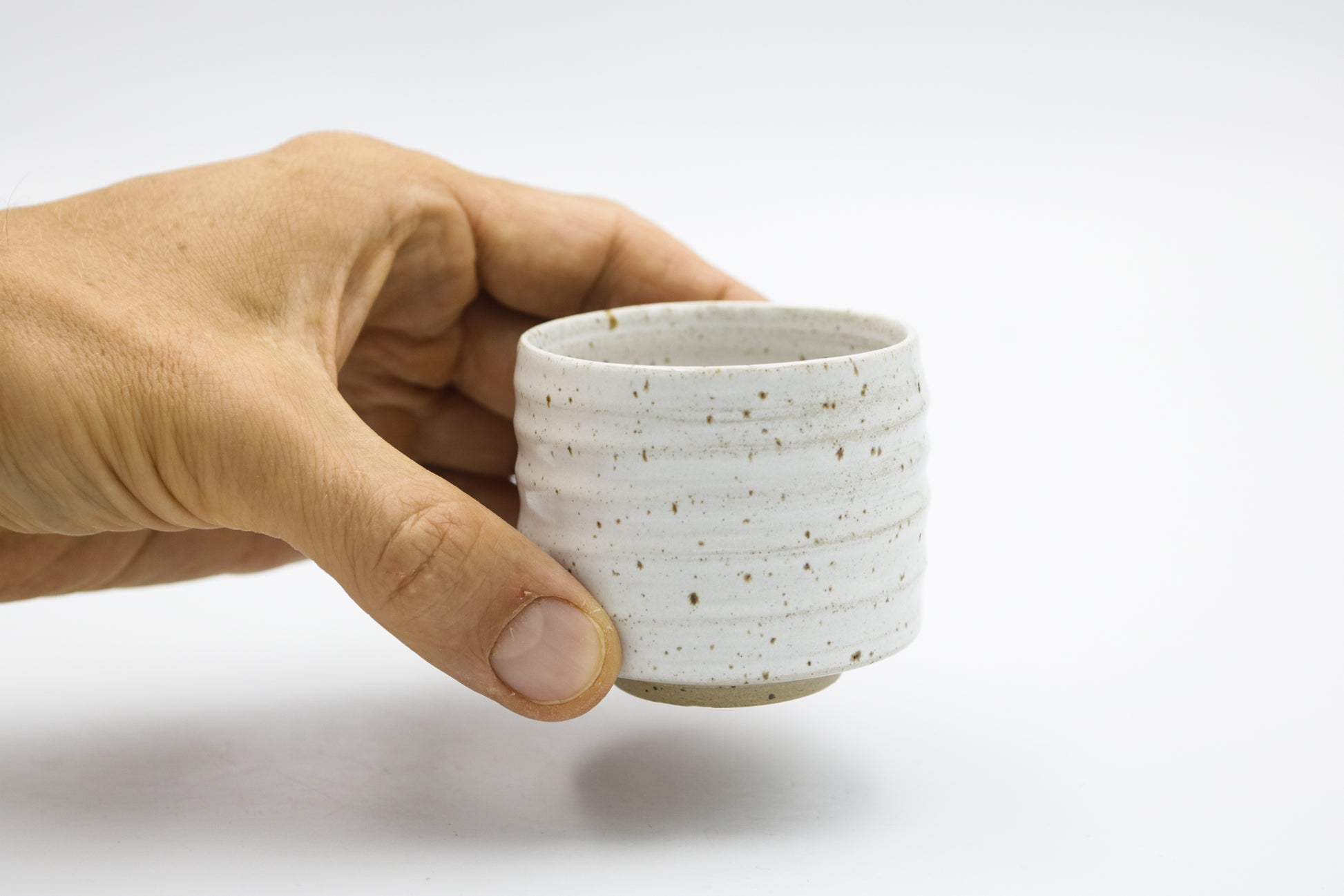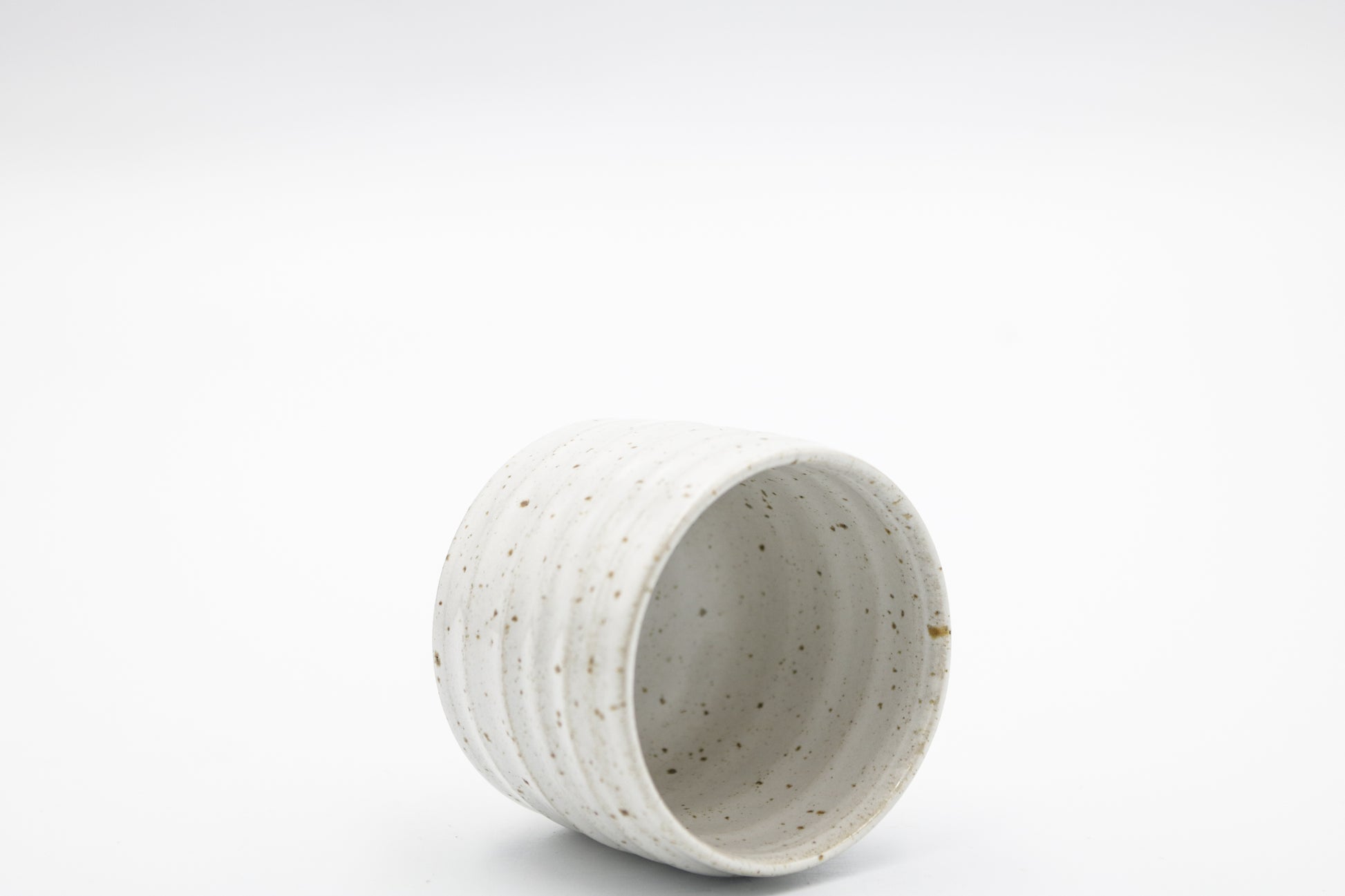 Hand thrown speckled stoneware cup. Glazed inside and outside with satin glaze.