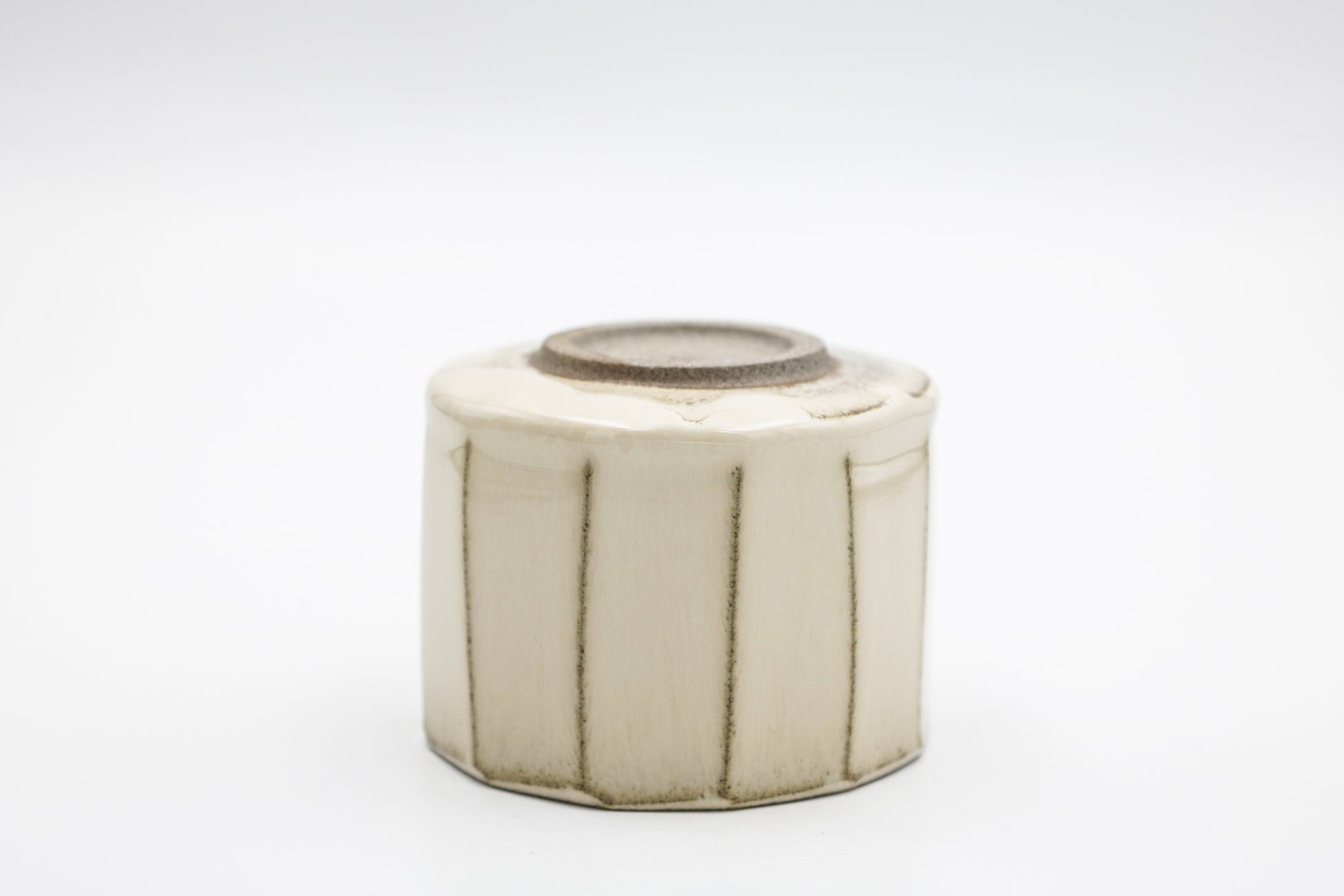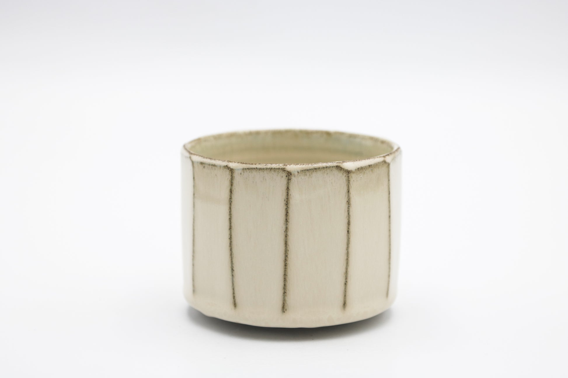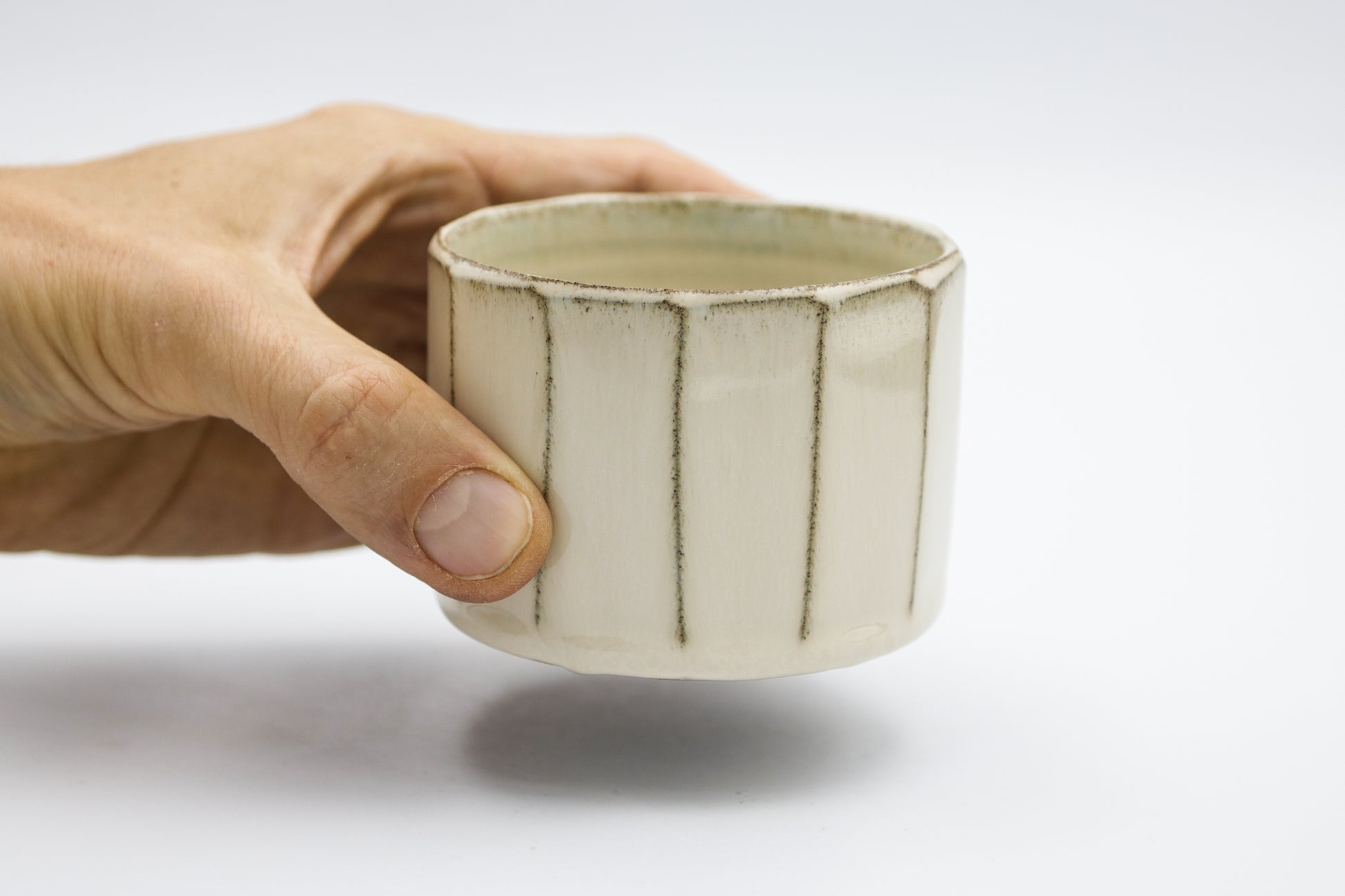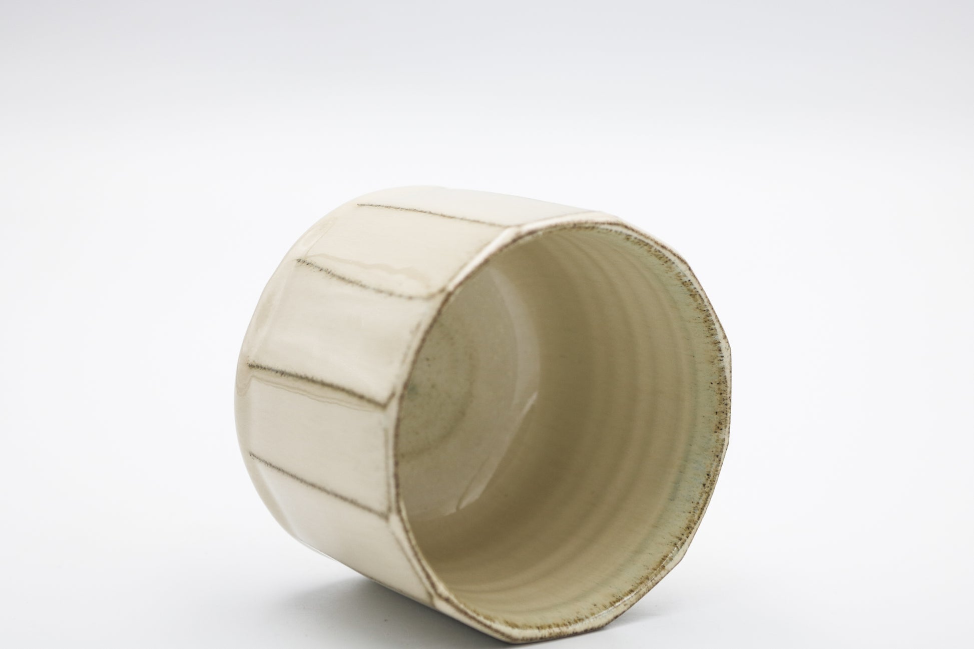 Hand thrown and cut stoneware cup. Glazed inside and outside.