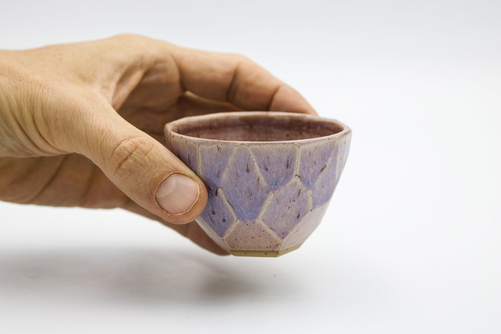 Hand thrown and cut stoneware cup. Glazed inside and outside. One of a kind.