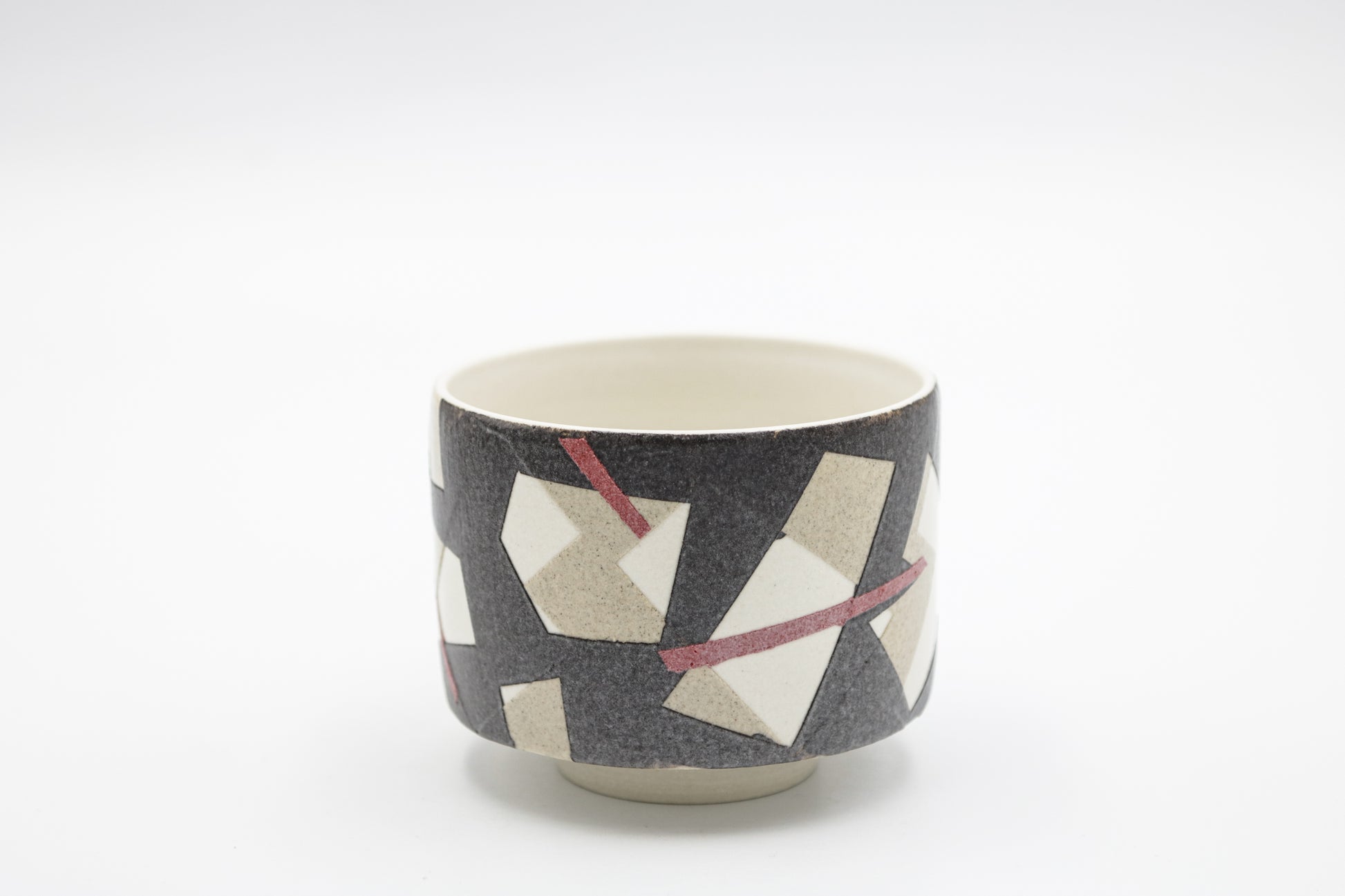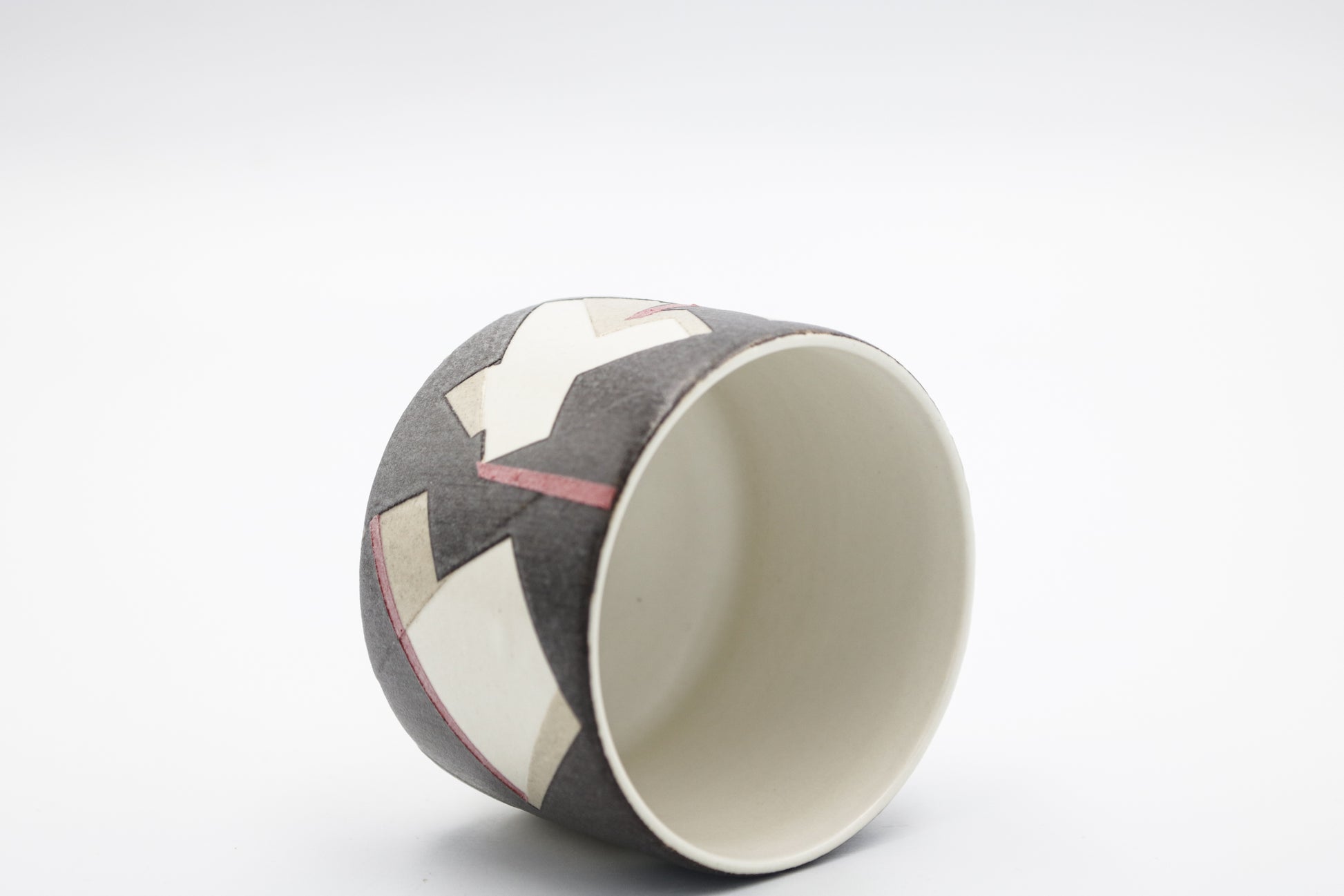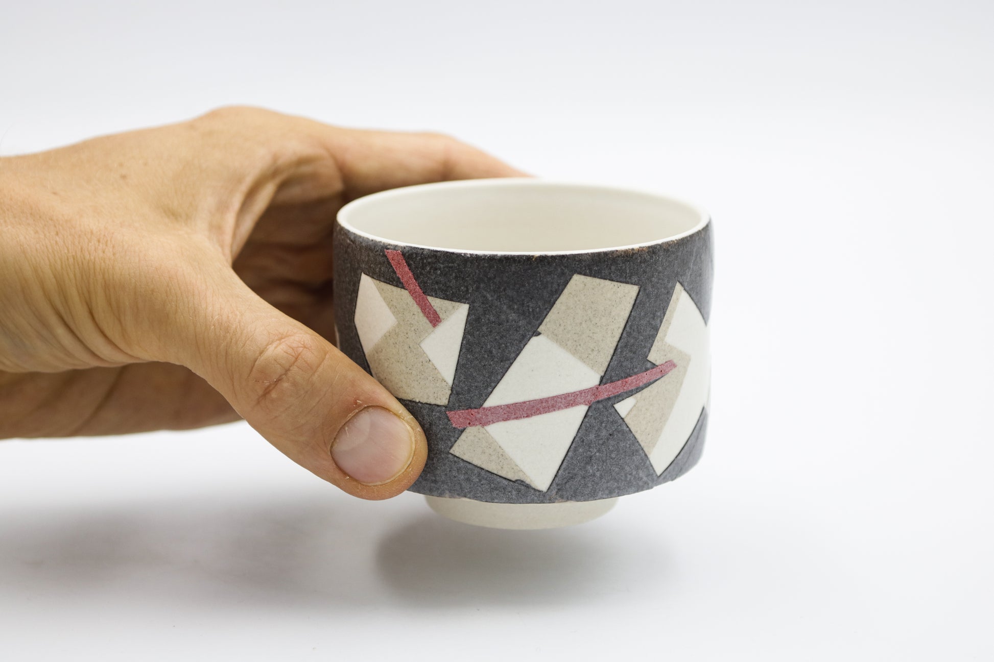 Hand thrown and decorated, layered stoneware cup. Glazed inside and outside with matte glaze.