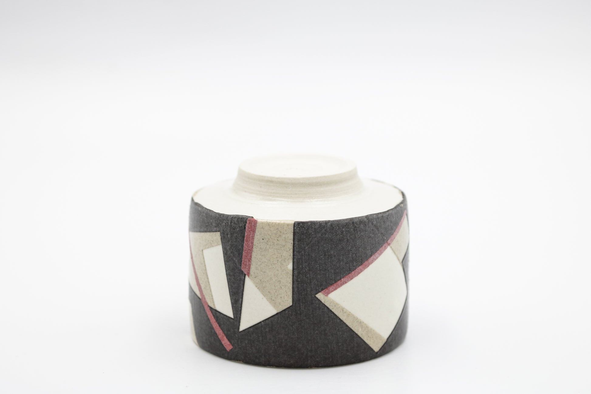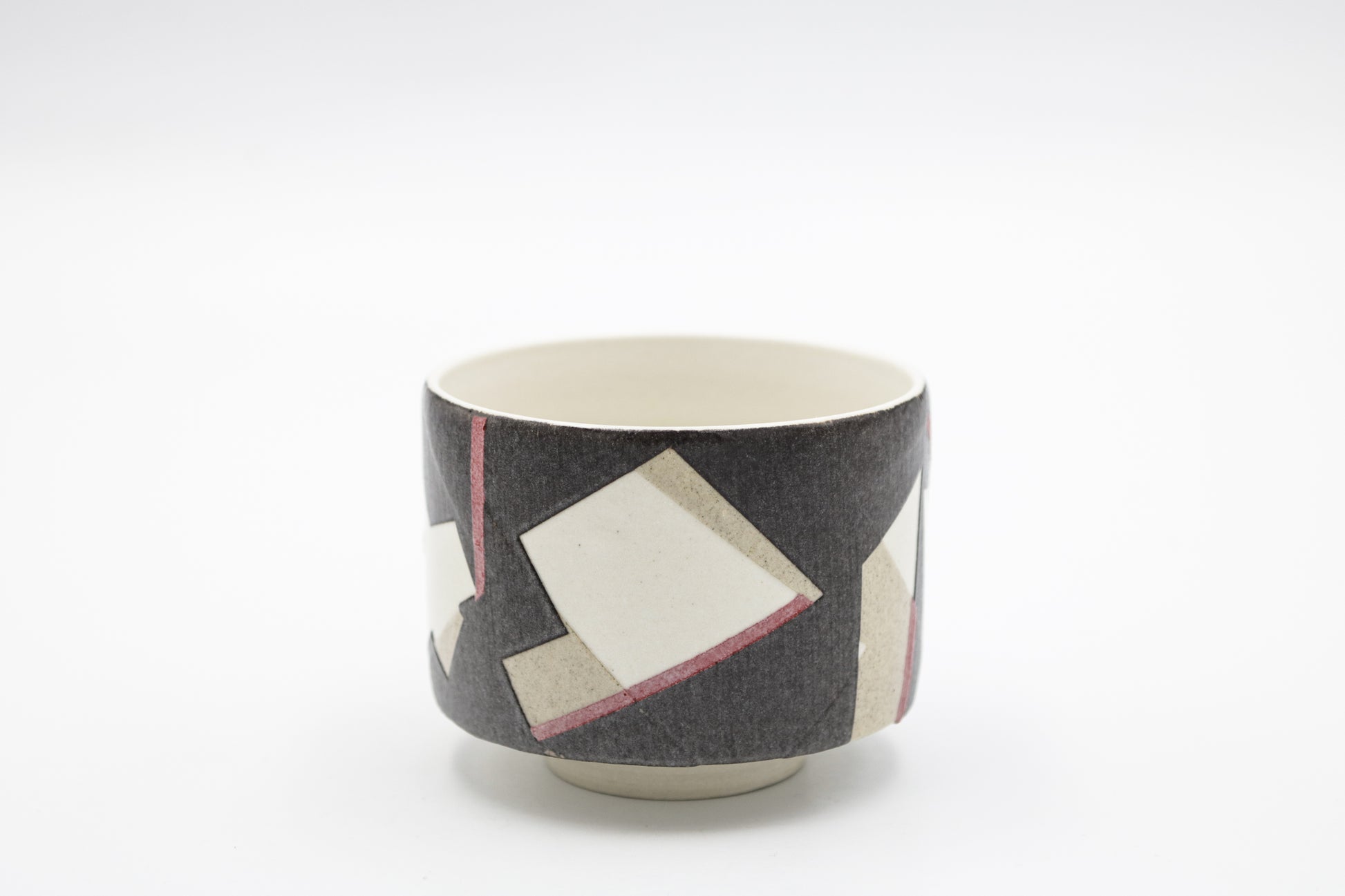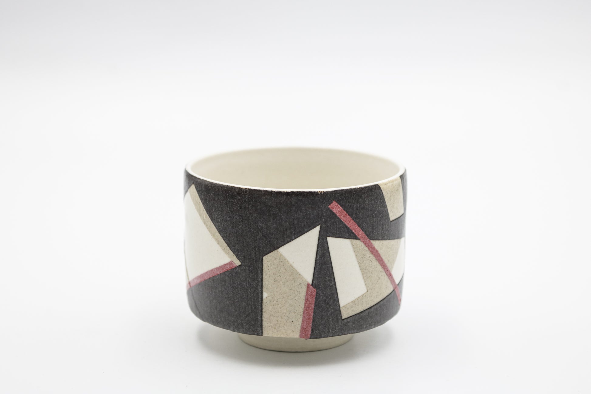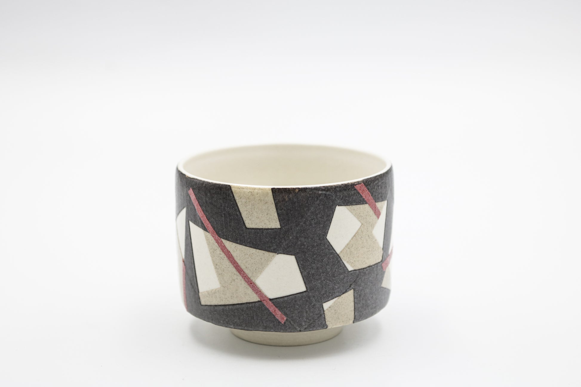 Hand thrown and decorated, layered stoneware cup. Glazed inside and outside with matte glaze.