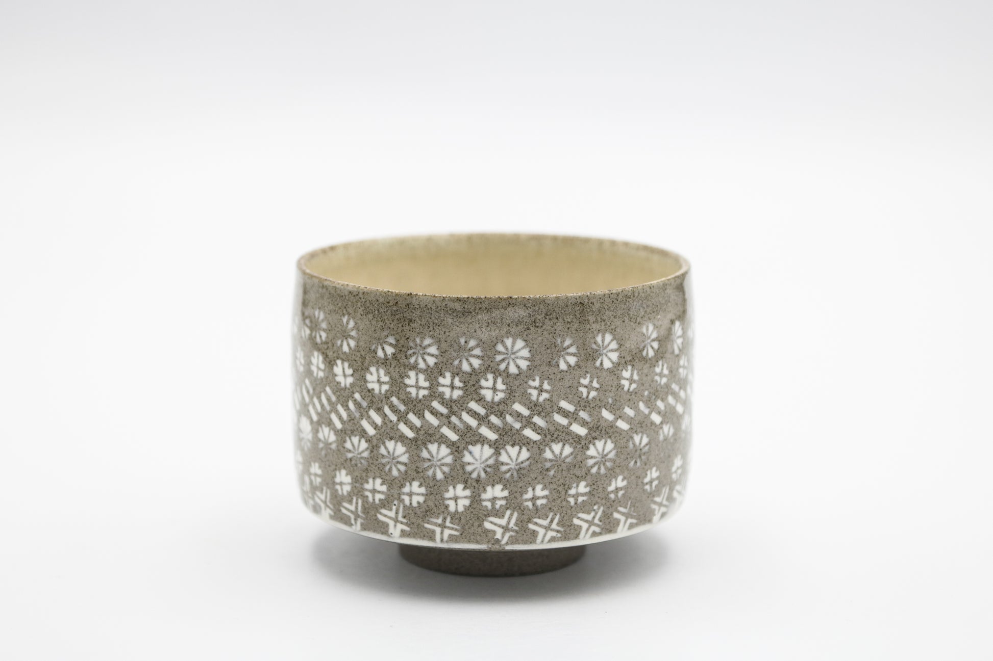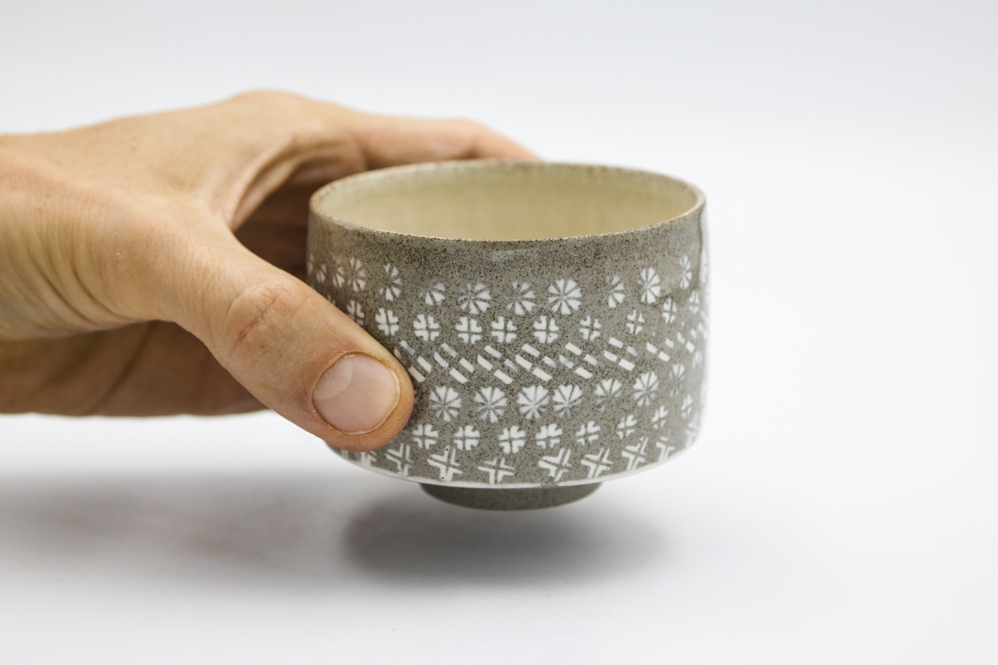 Hand thrown and decorated stoneware cup. Glazed inside and outside with transparent glaze. One of a kind.